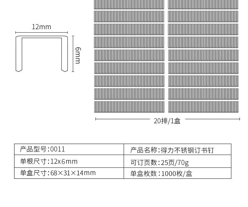 Grapas de acero inoxidable Deli 0011 Grapas estándar 24/6 Grapas universales unificadas sin. 12 grapadoras