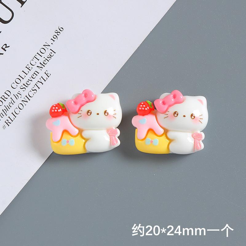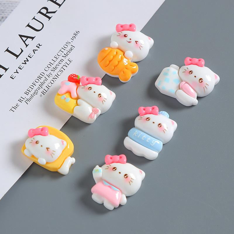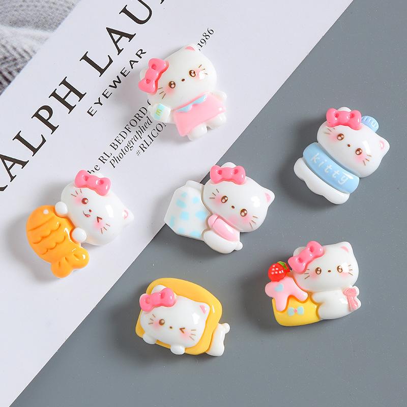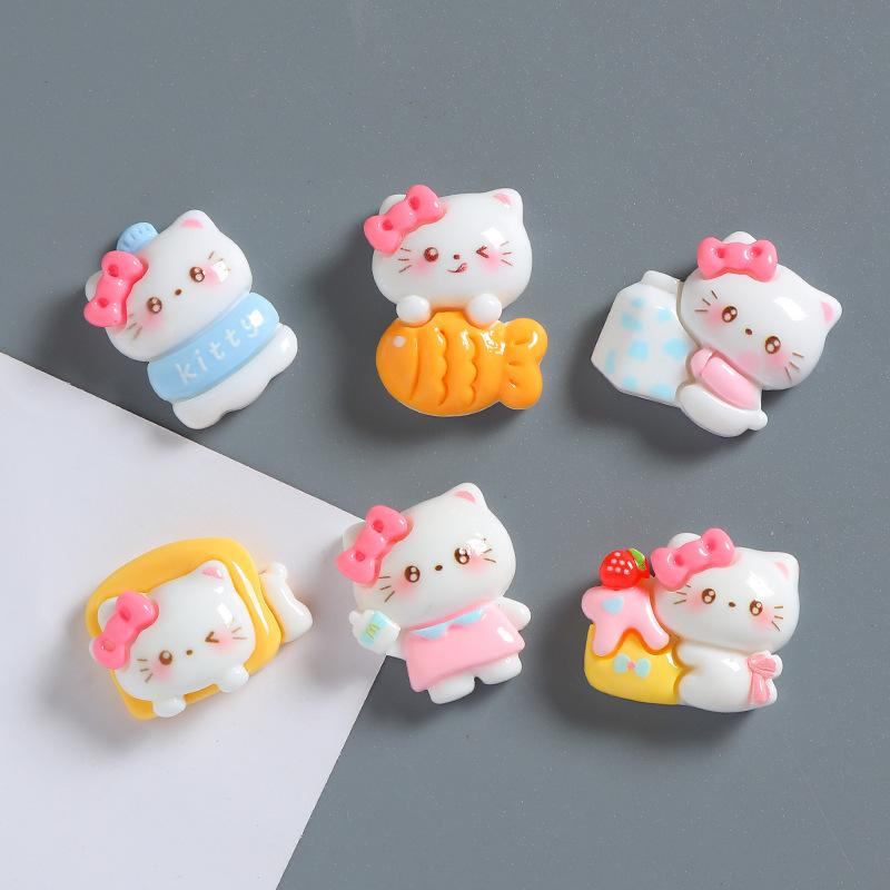 Accesorios de resina con forma de gato y lazo de dibujos animados, hechos a mano, con pegamento en crema para funda de teléfono móvil, horquilla para el pelo, material de joyería