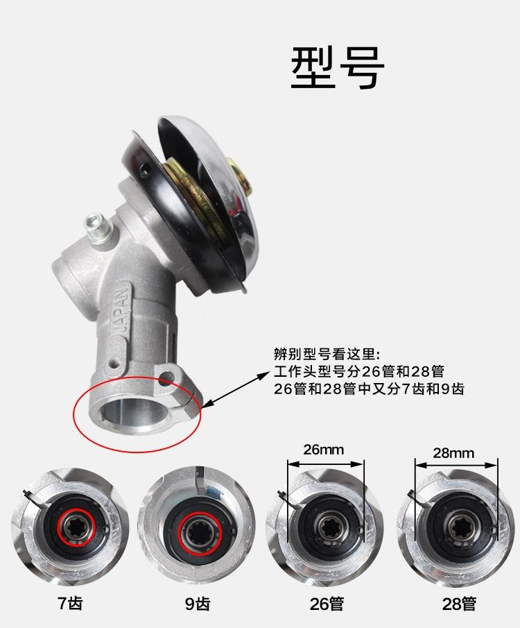 Cabezal de trabajo para cortadora de césped, tubo 26, tubo 28, cabezal de deshierbe, conjunto de caja de engranajes para desbrozadora, accesorios de jardín al por mayor