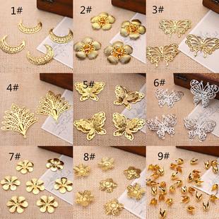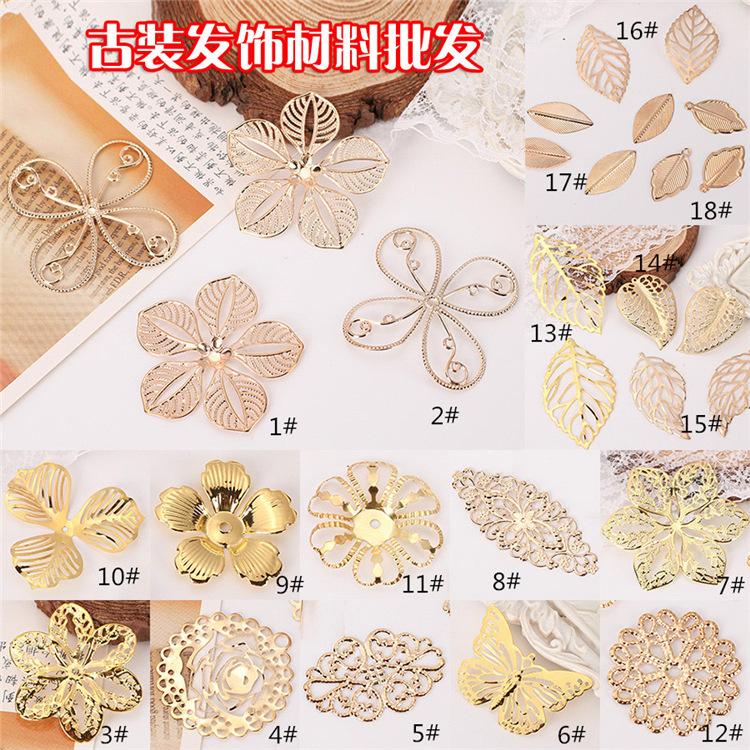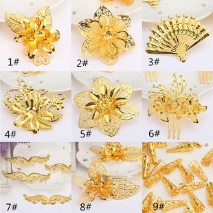 【nombre】Metal dorado KC hoja hueca mariposa diy disfraz antiguo novia adornos para el cabello corona de fénix horquilla material accesorios que tiemblan al paso