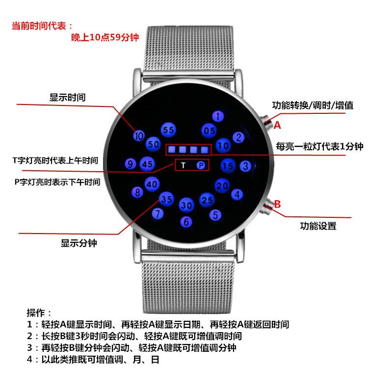 1. Los relojes LED son productos de bajo consumo de energía, pero no deben encenderse frecuentemente. La duración de la batería es de 6 meses.