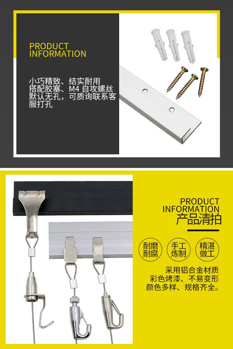 Dispositivo de pintura colgante, galería de rieles, exposición de pintura, ranura para pintura colgante, dispositivo de pintura colgante engrosado, espejo colgante, línea, riel de pintura ajustable, gancho colgante deslizante
