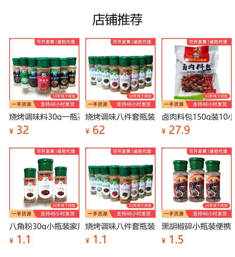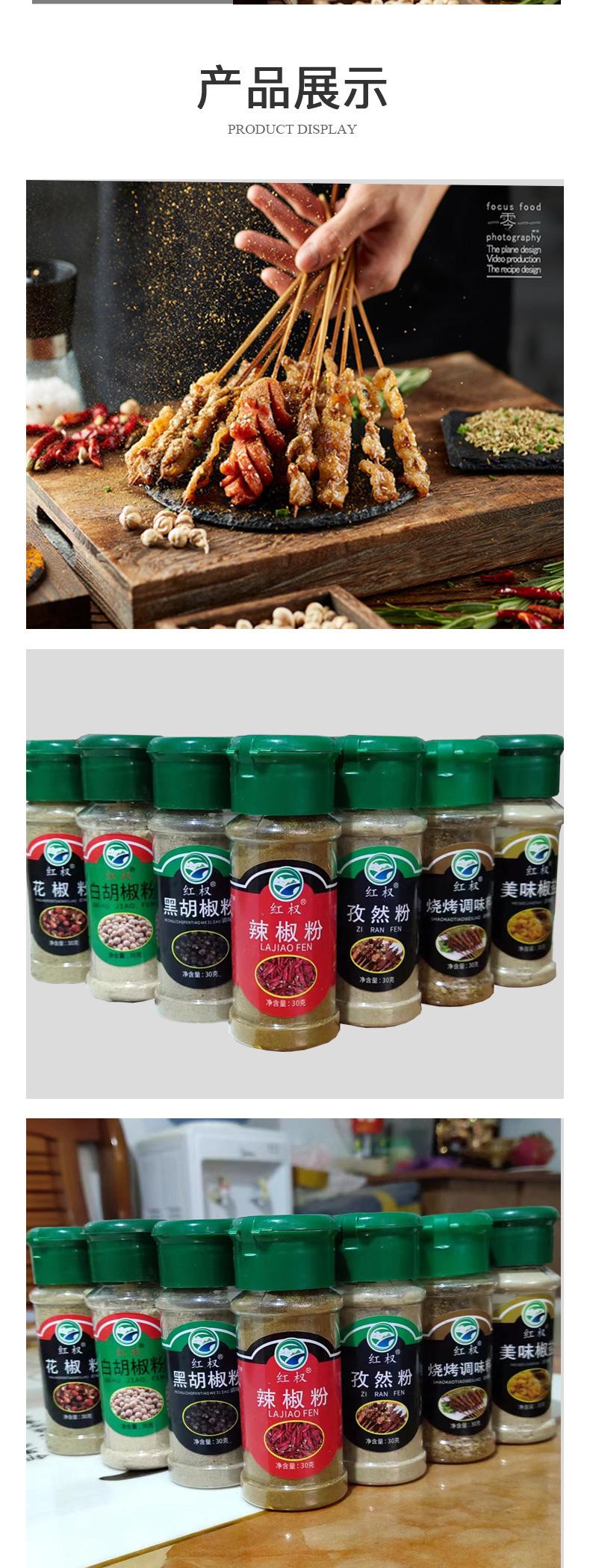 Chili powder, Cumin, Barbecue seasoning, Delicious salt and pepper, Black pepper, White pepper, Pepper powder, Spiced powder