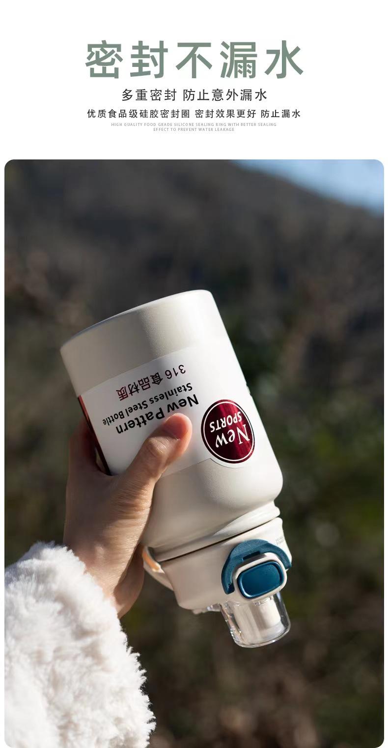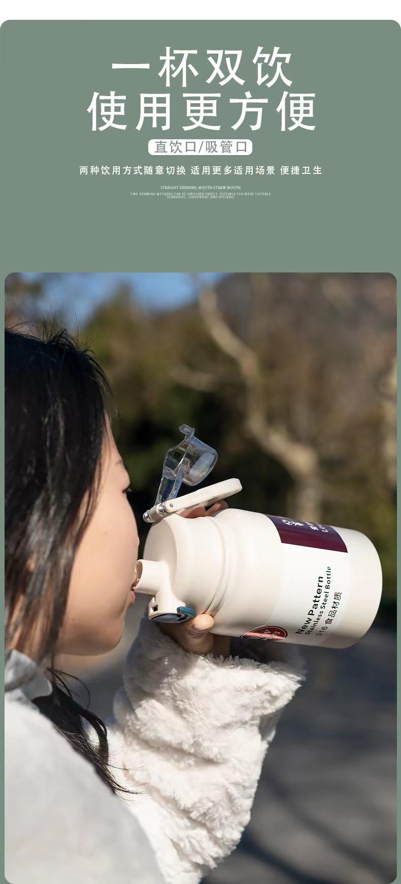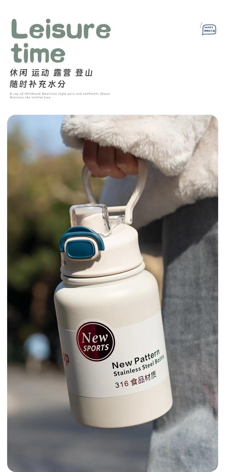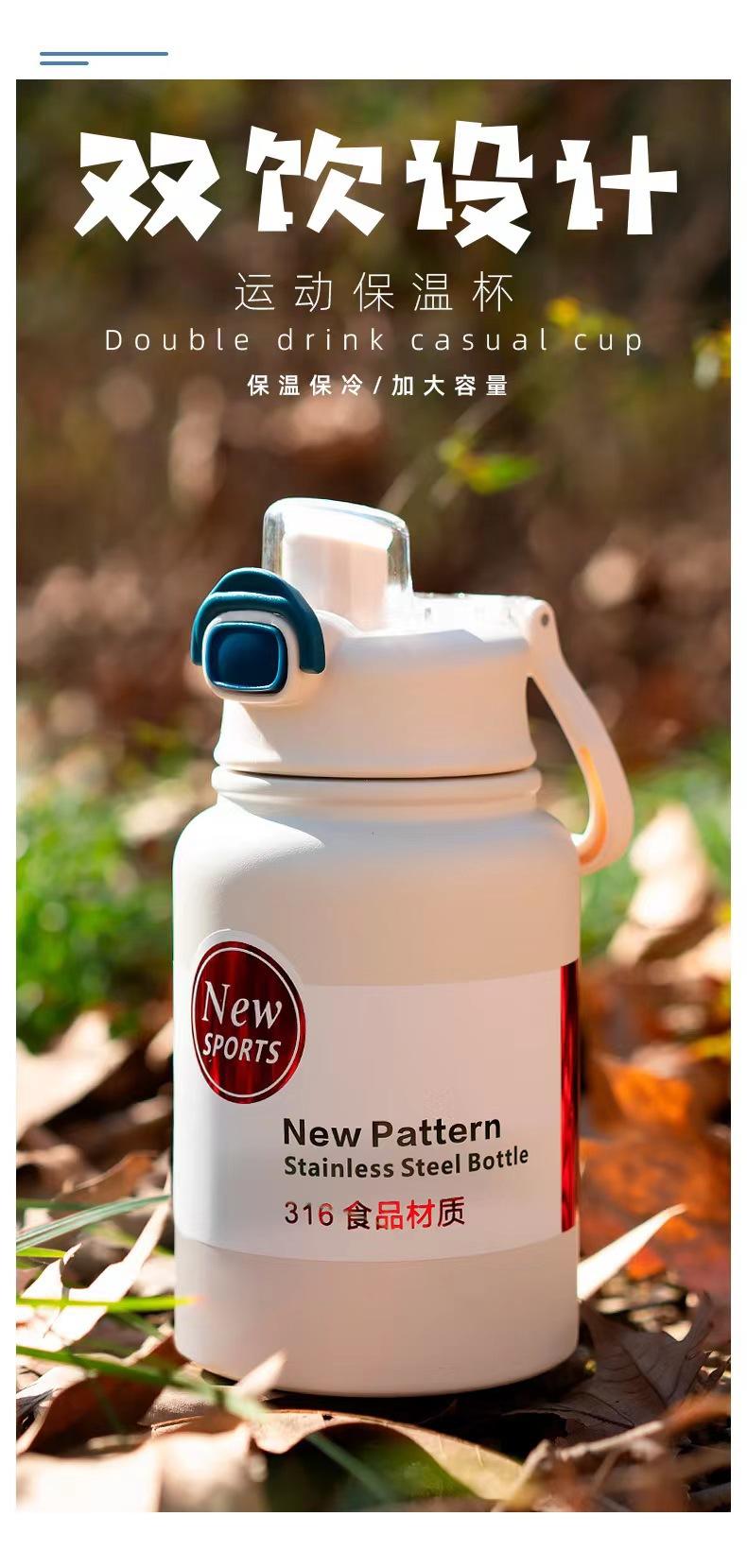 Termo de acero inoxidable 316 de gran capacidad con doble tubo de succión para estudiantes, ideal para deportes al aire libre y de alto valor estético.