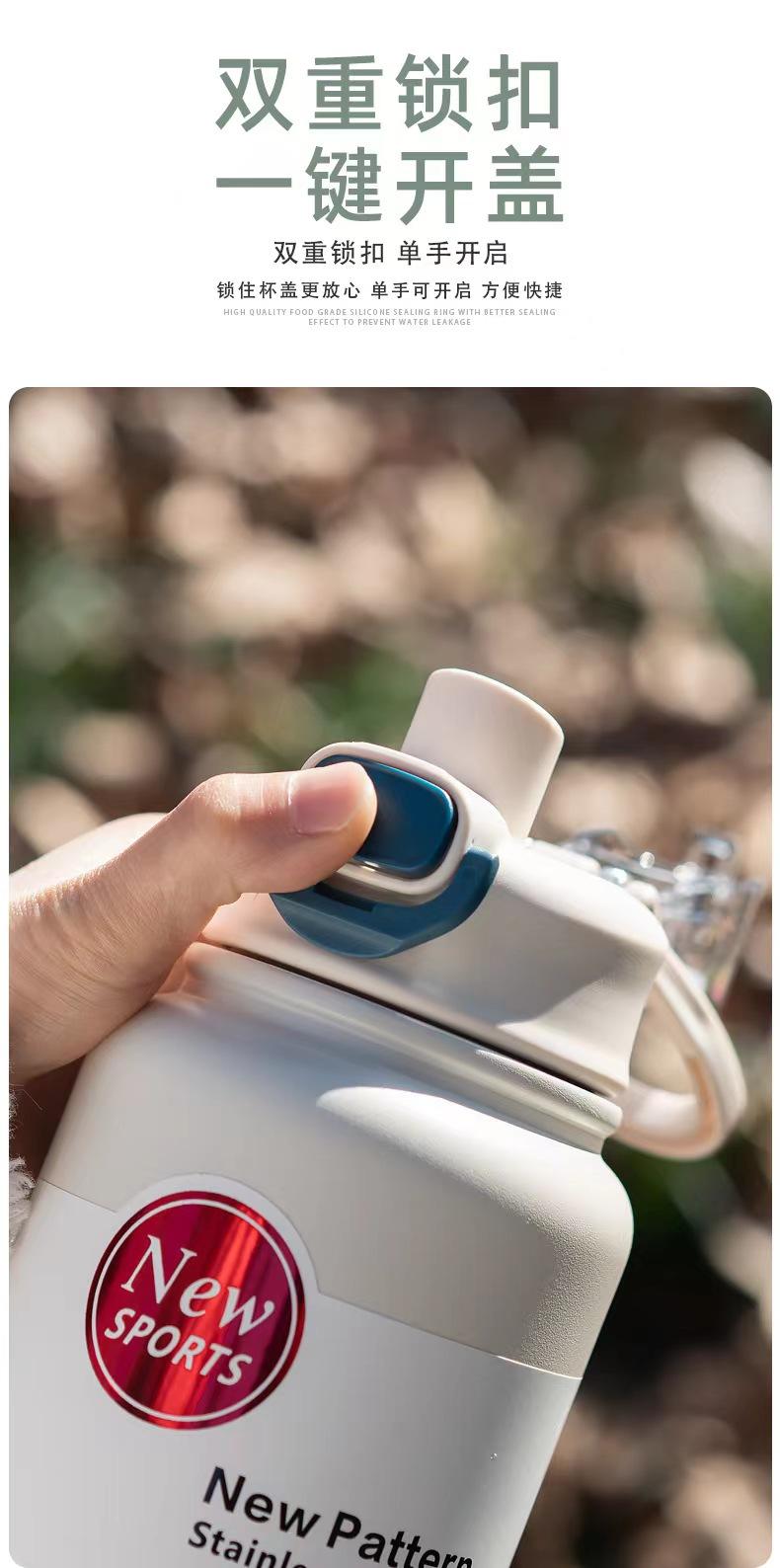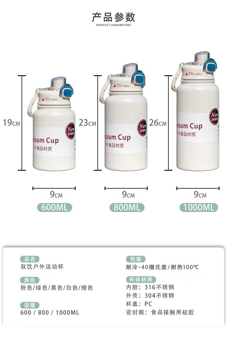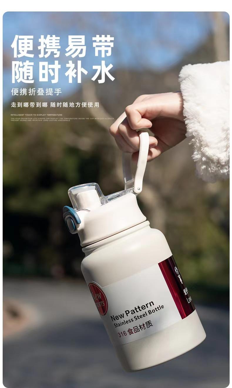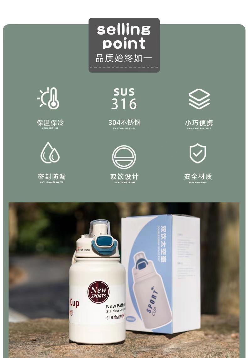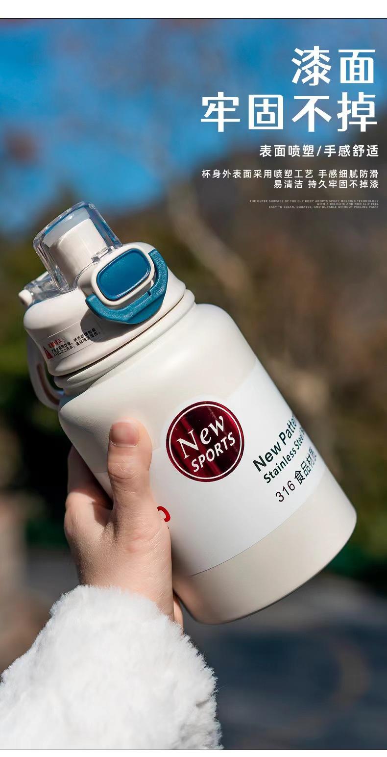 Termo de acero inoxidable 316 de gran capacidad con doble tubo de succión para estudiantes, ideal para deportes al aire libre y de alto valor estético.