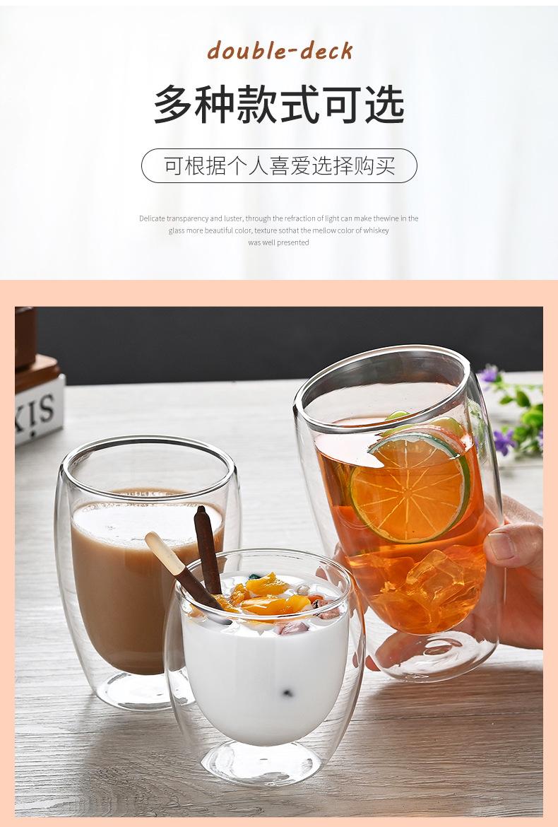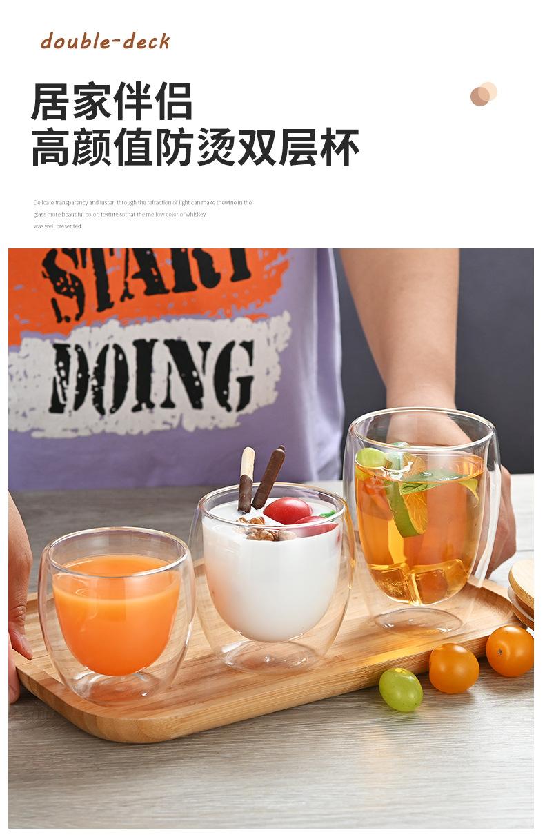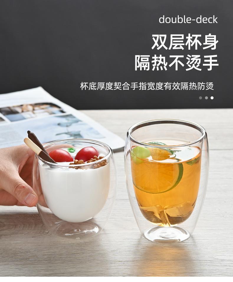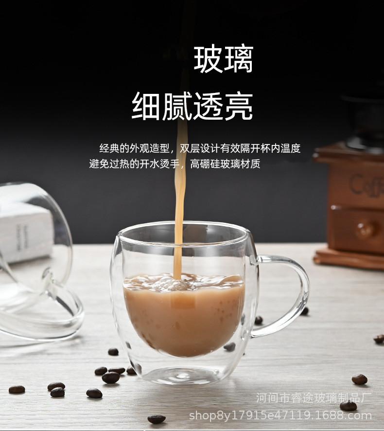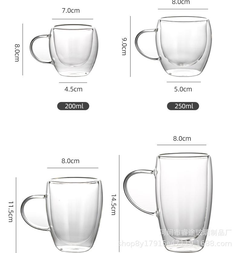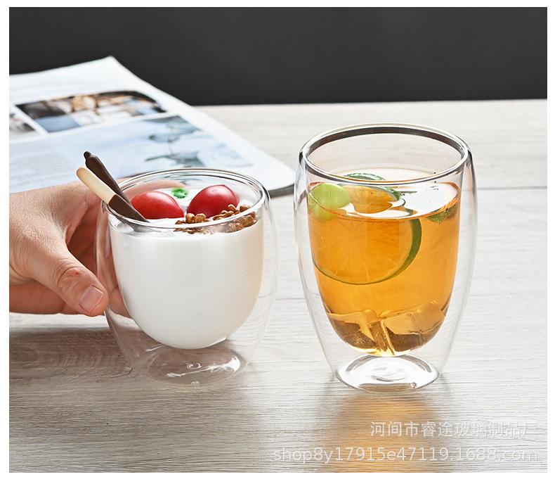 Taza de café, taza de té, taza de leche de vidrio transparente, taza de leche de vidrio doble de oficina con aislamiento térmico