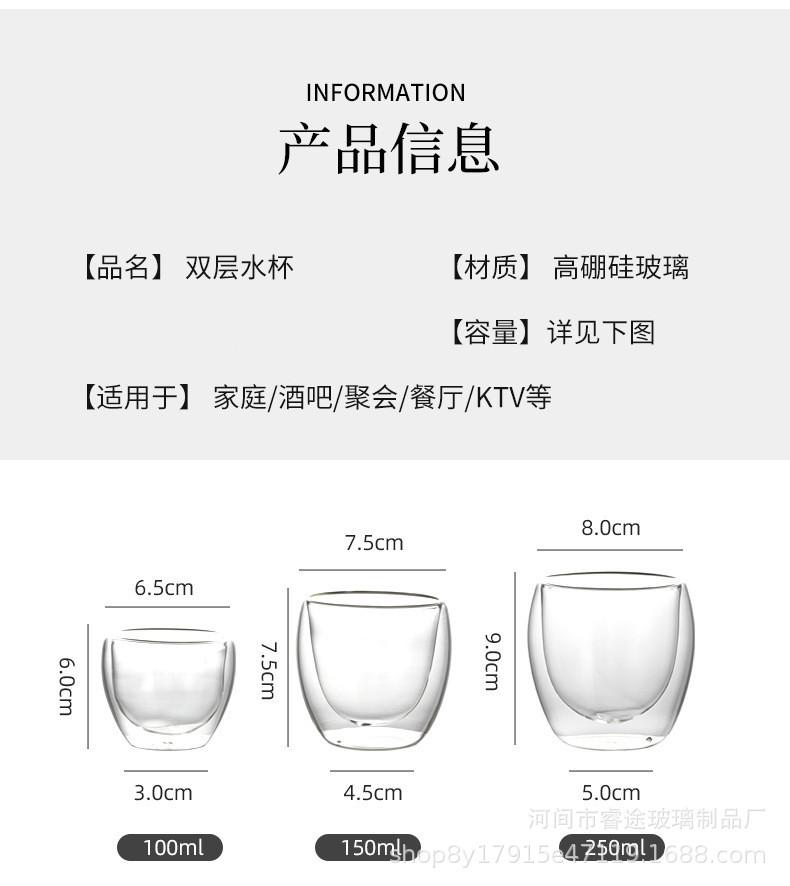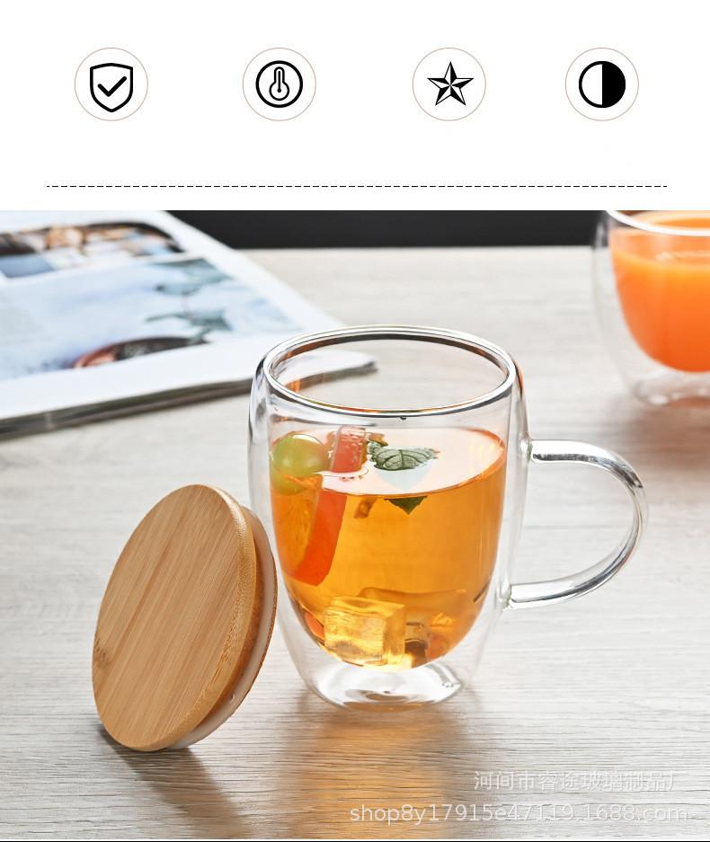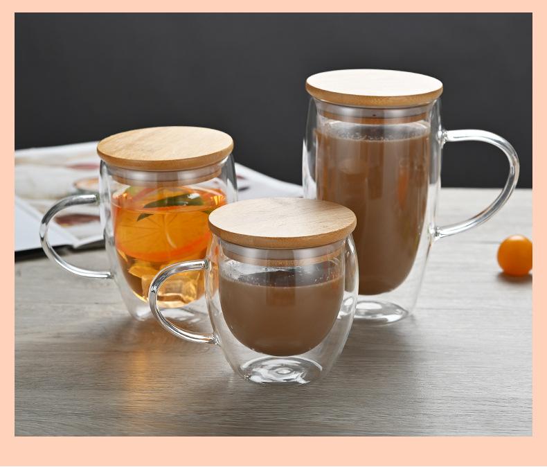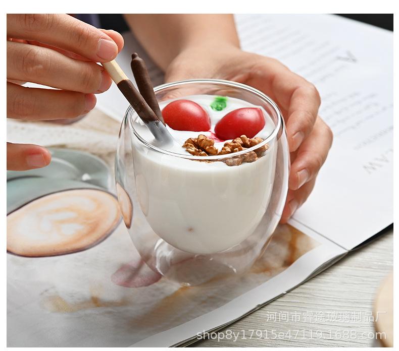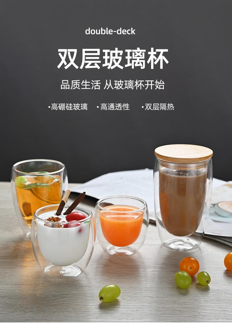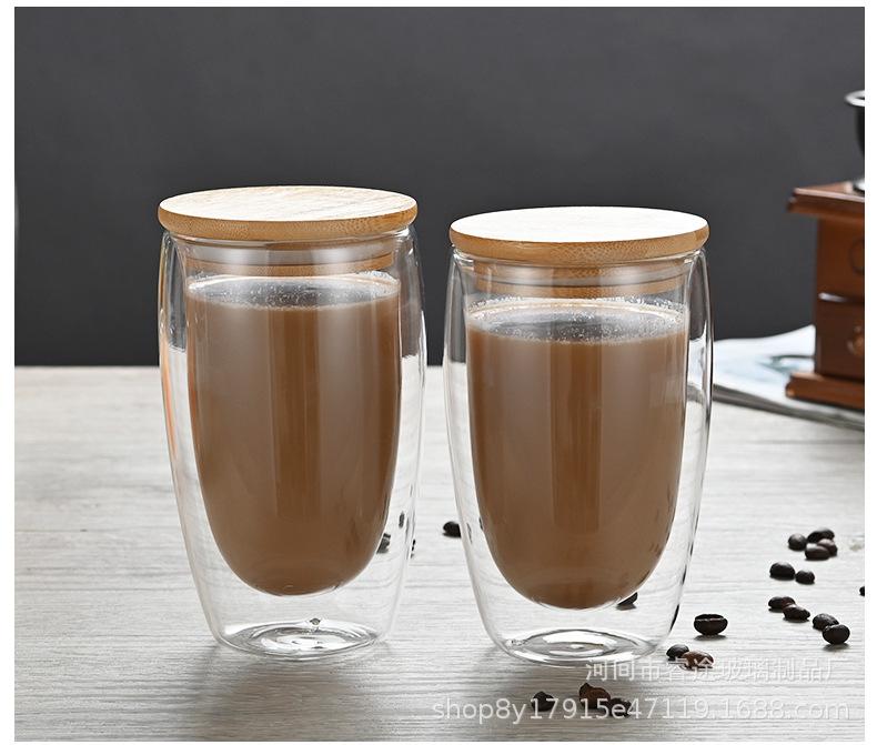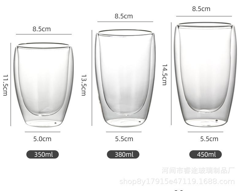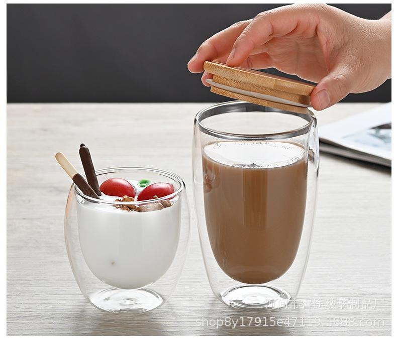 Taza de café, taza de té, taza de leche de vidrio transparente, taza de leche de vidrio doble de oficina con aislamiento térmico