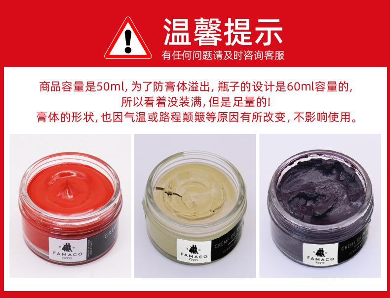 Betún para zapatos FAMACO importado de Francia, aceite de mantenimiento para cuero negro y blanco, betún para zapatos de cuero marrón incoloro universal