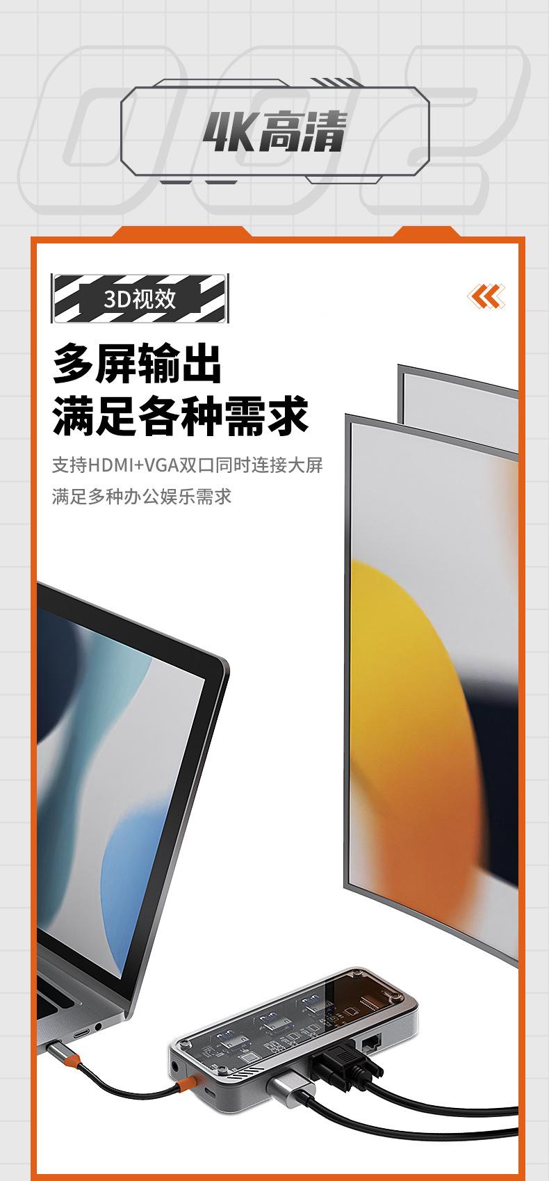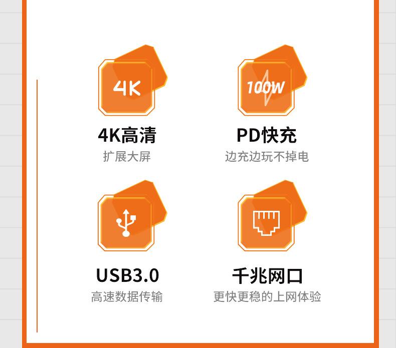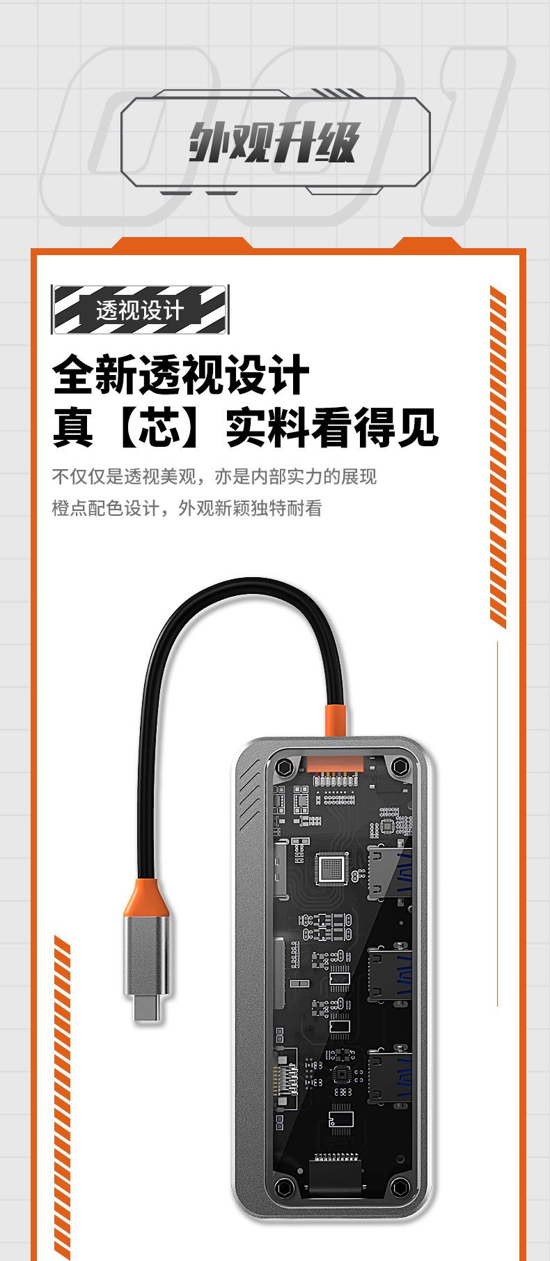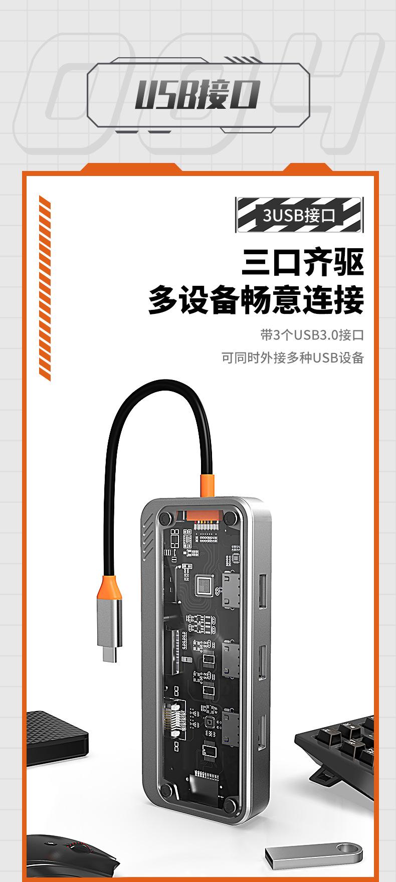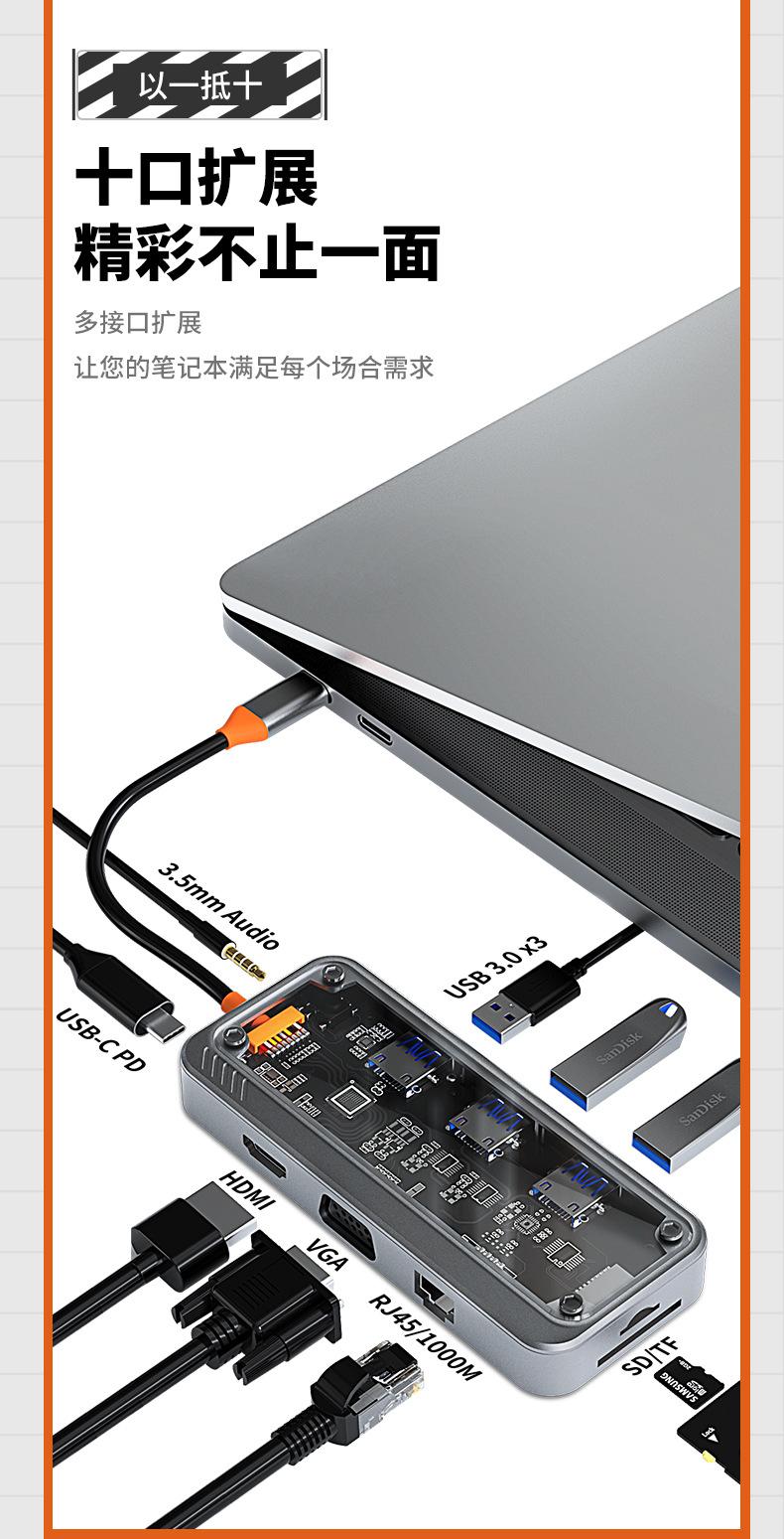 Estación de acoplamiento tipo C 10 en 1 transparente y popular transfronteriza, concentrador USB, concentrador, convertidor de computadora, base de expansión