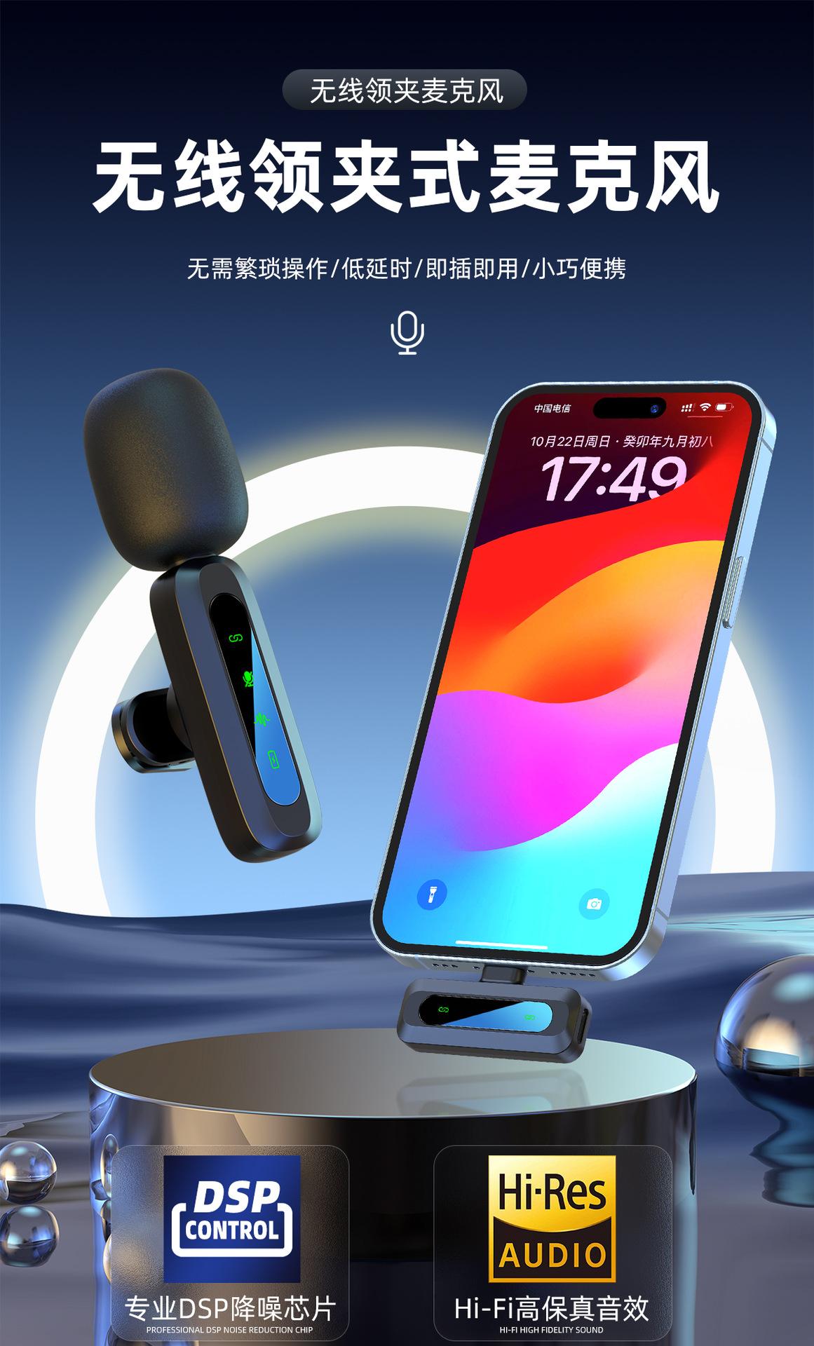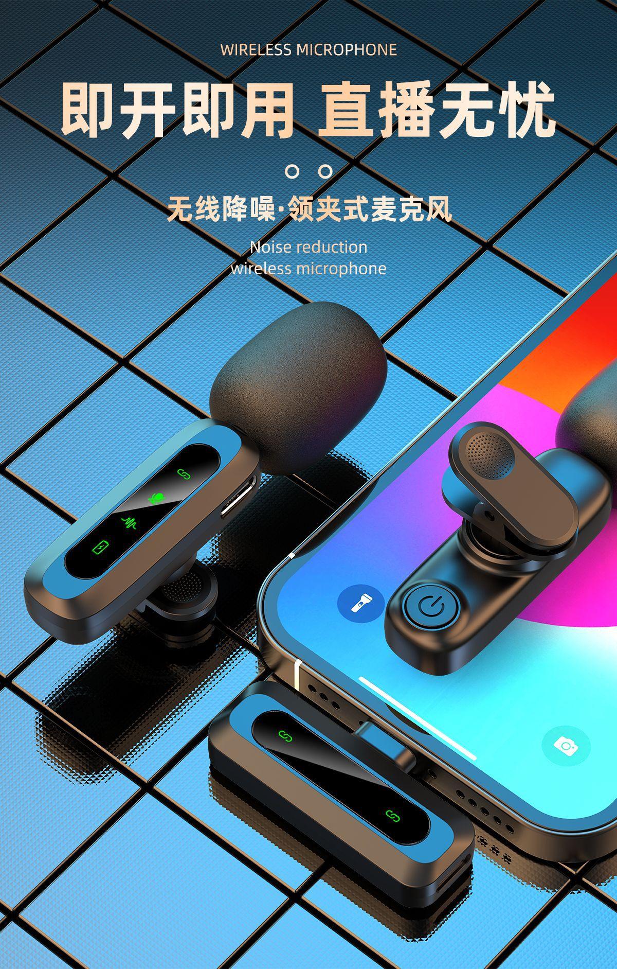 Micrófono inalámbrico de solapa con clip para collar transfronterizo, micrófono móvil para exteriores para transmisiones en vivo, micrófono para entrevistas, reducción de ruido de radio, nuevo mini micrófono