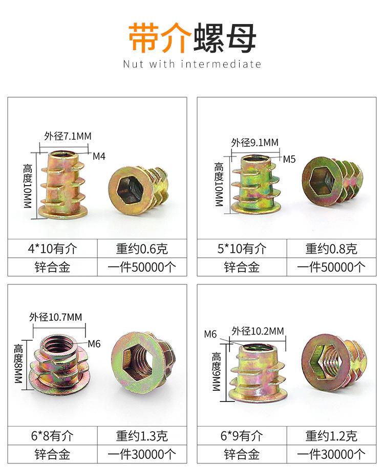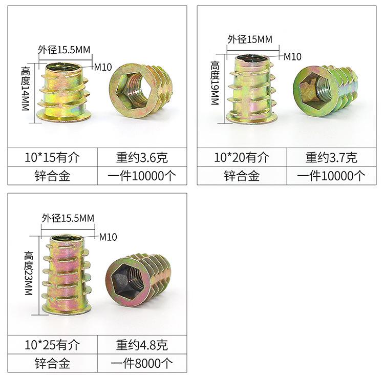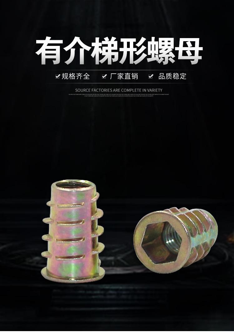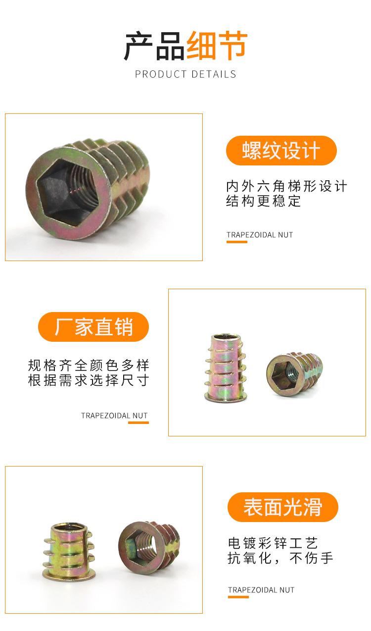 Tuerca trapezoidal de aleación de zinc tuerca para muebles con dientes internos y externos tuerca de madera maciza incrustada accesorios de ferretería incrustados