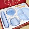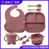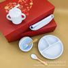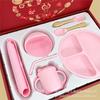 Nuevo plato con compartimento para bebé, babero de silicona, taza con pajita, tazón de suplemento alimenticio para entrenamiento de bebés y niños, vajilla, caja de regalo