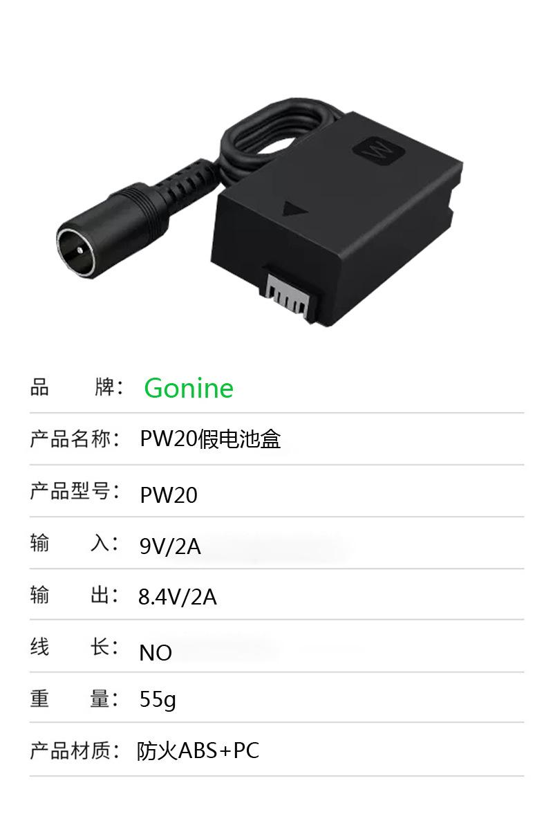 Caja de Batería Falsa Gonine Pw20 Adaptador de Batería Np-Fw50 Adecuado para Cámaras Sony Alpha 7, A7