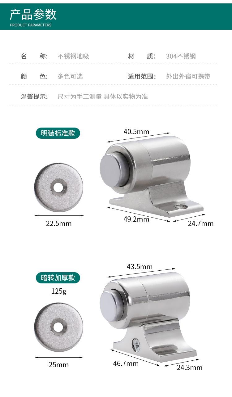 Motor de aleación de zinc engrosado, succión de piso, puerta invisible táctil, baño, fuerte succión magnética, puerta de hotel, parachoques, base de puerta