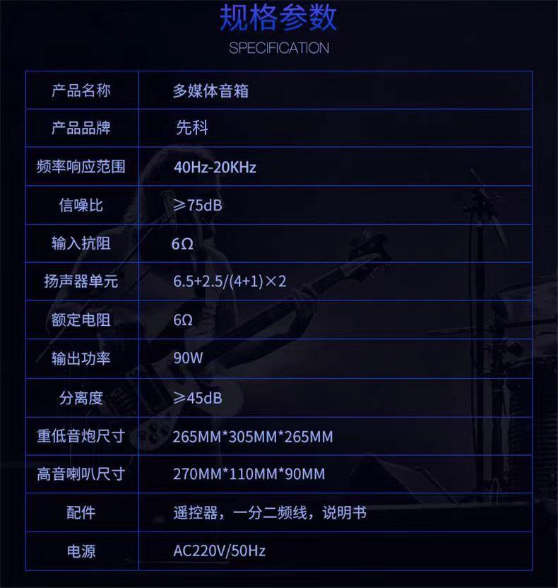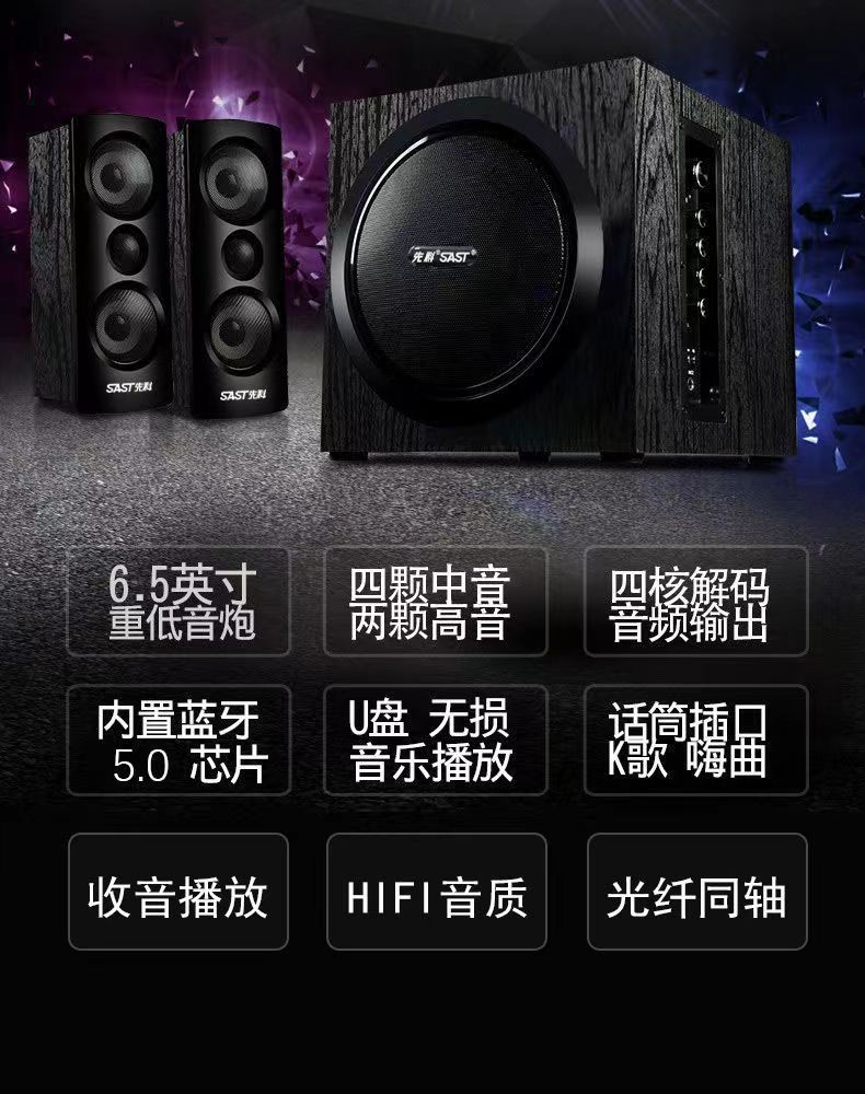 6.5-inch subwoofer, 2 treble, 4 2.5-inch midrange
