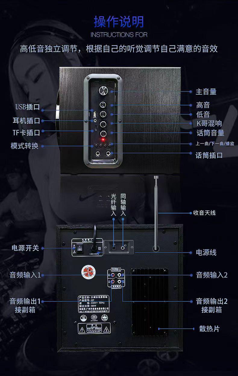 Xianke Audio Cine en Casa Audio de Madera Audio Bluetooth Alta Potencia Altavoz Grande de 6.5" Super Bajos Hogar