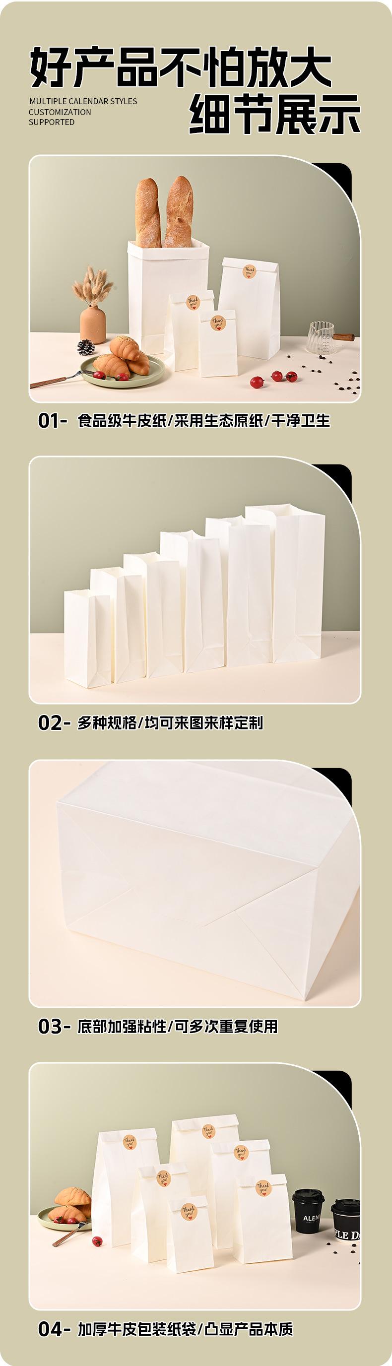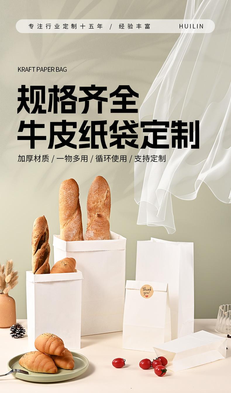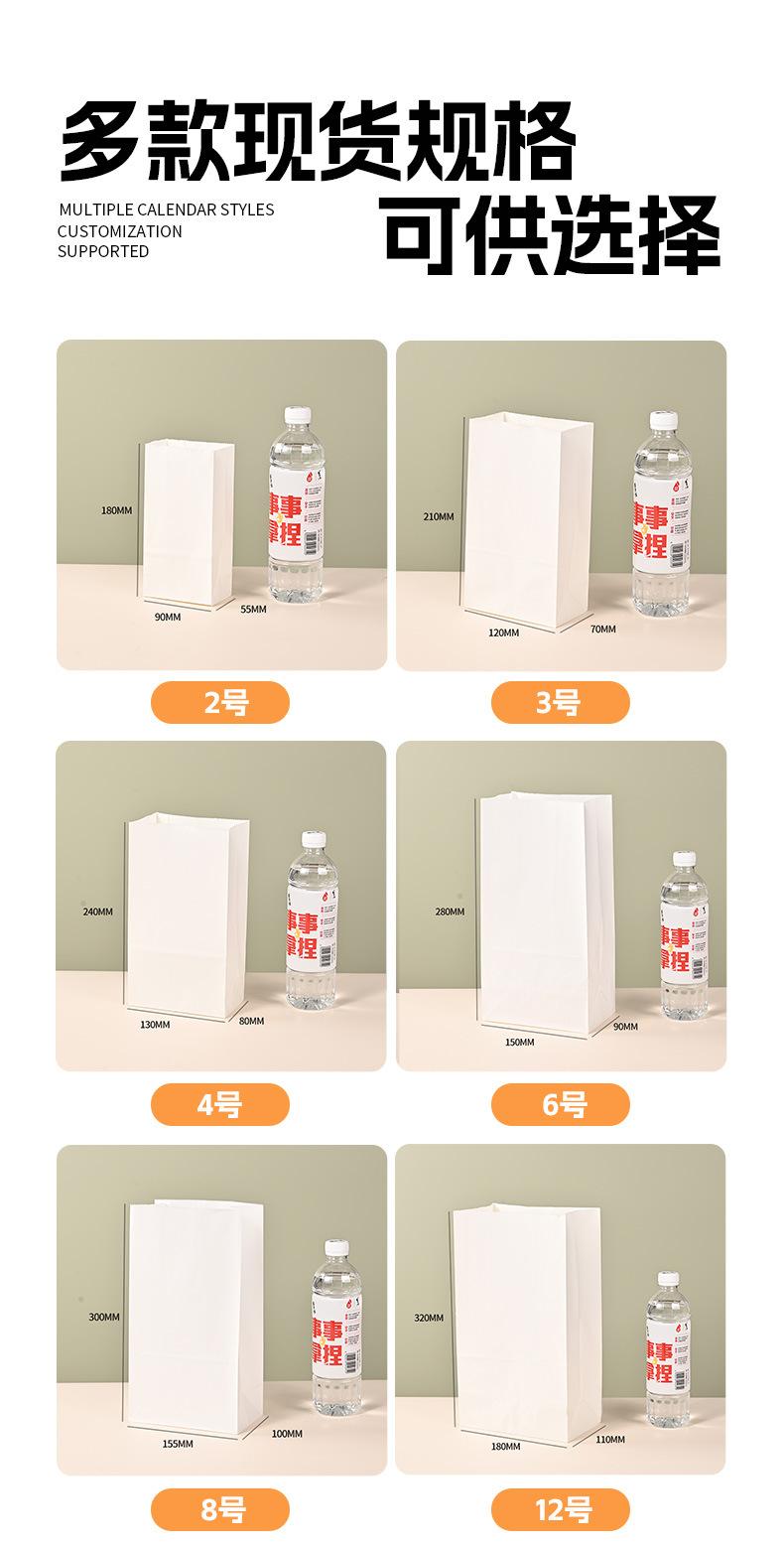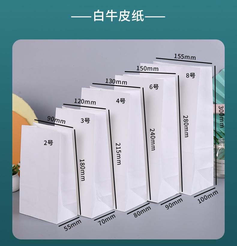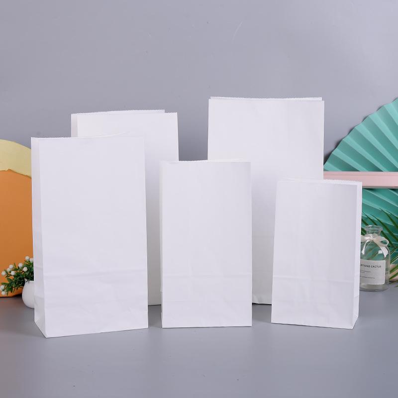 Bolsa de Fondo Cuadrado de Papel Kraft Blanco Bolsa para Llevar Panadería Lista para Usar Desechable Bolsa de Embalaje para Tostadas