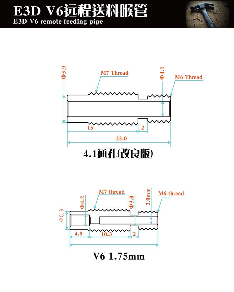 Accesorios para impresora 3D CNC E3D V6, tubo de alimentación de garganta de acero inoxidable totalmente metálico, tubo de teflón.