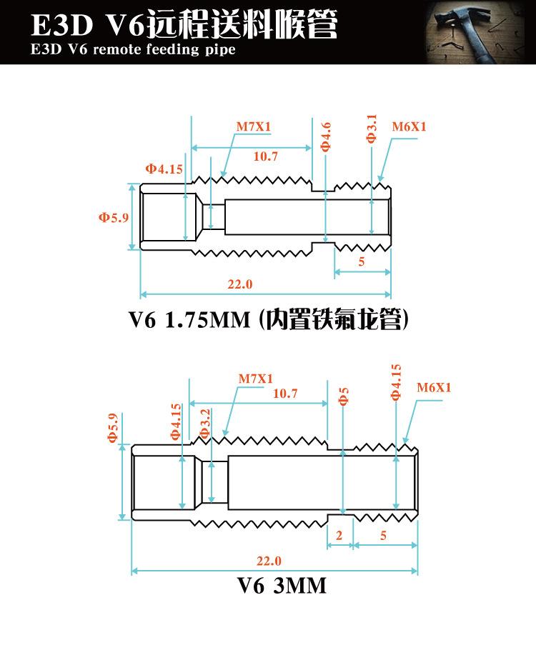 1.75mm without teflon tube (1 piece), 1.75mm with teflon tube (1 piece), 3mm without teflon tube (1 piece), 3m...