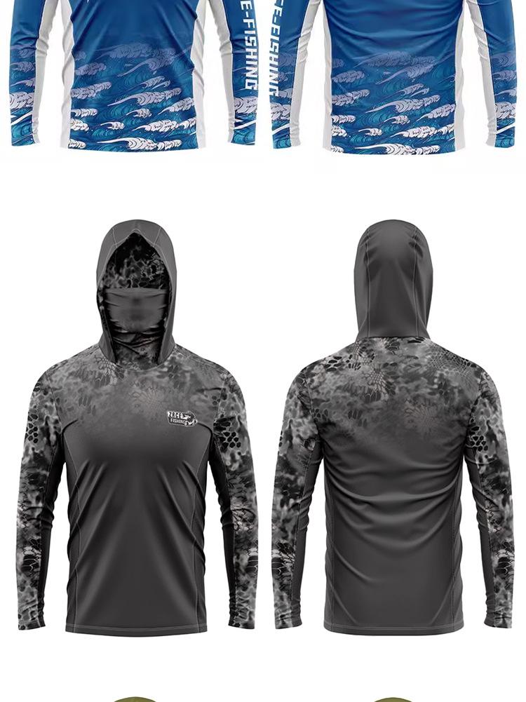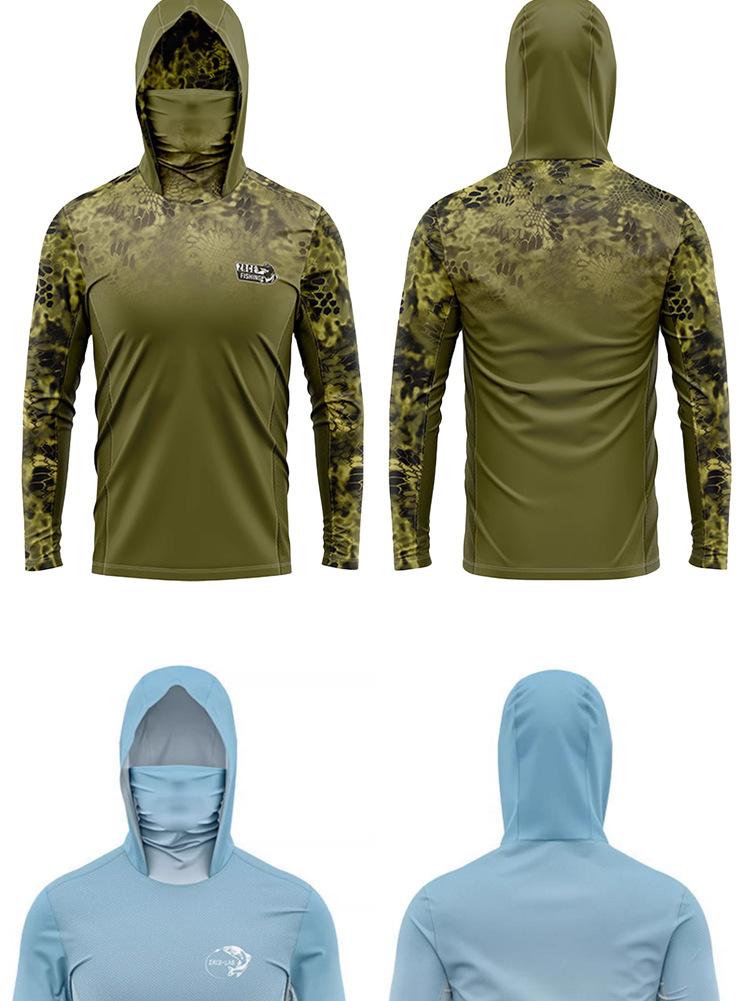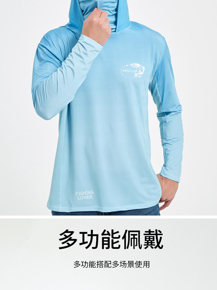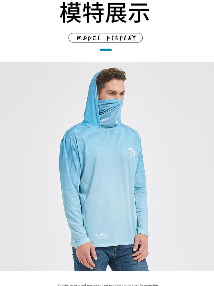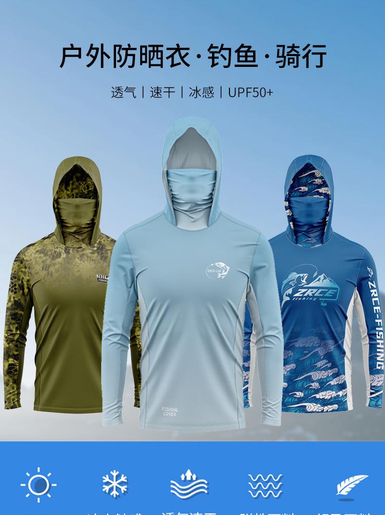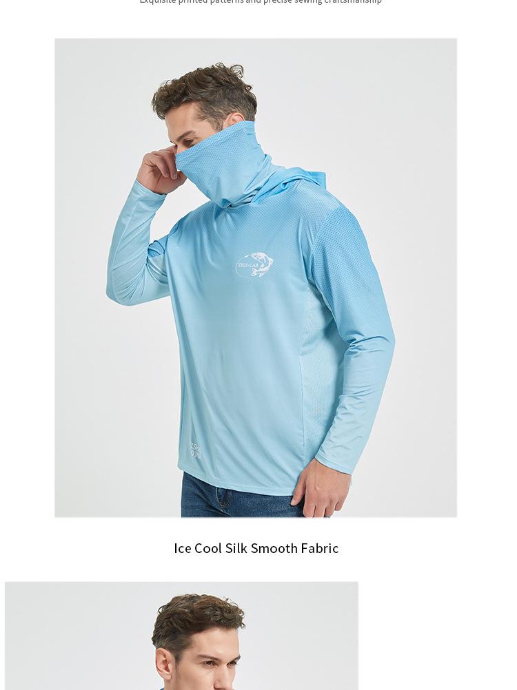 Ropa de pesca de seda de hielo con protección solar y sensación de hielo para exteriores, de secado rápido, para acampar y pescar, transpirable, protección UV, con capucha y máscara