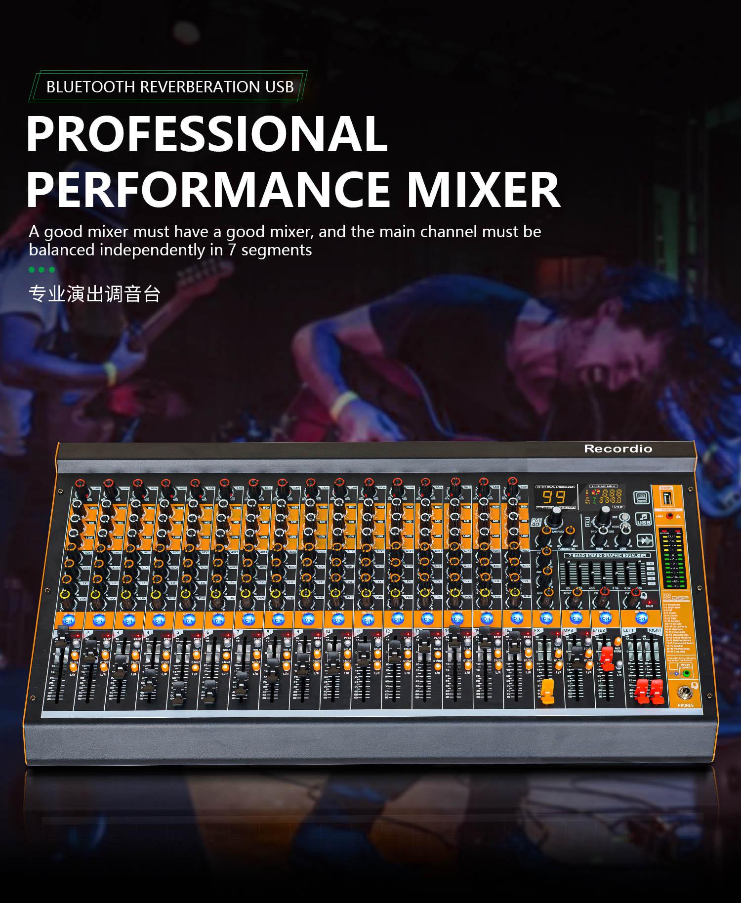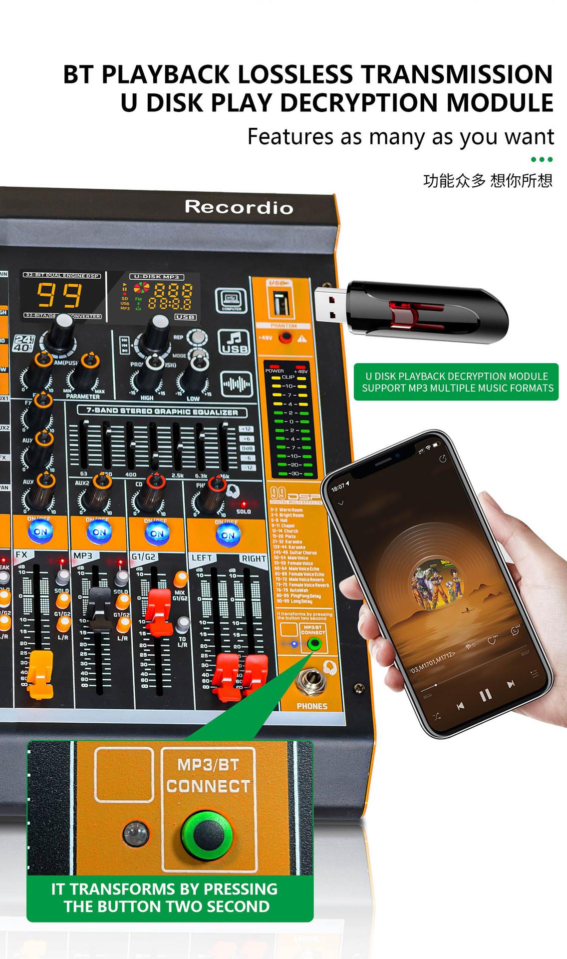 Mezclador de escenario MV24, mezclador profesional, barra de audio, disco, tarjeta de sonido USB, grabación, mezclador DJ Bluetooth