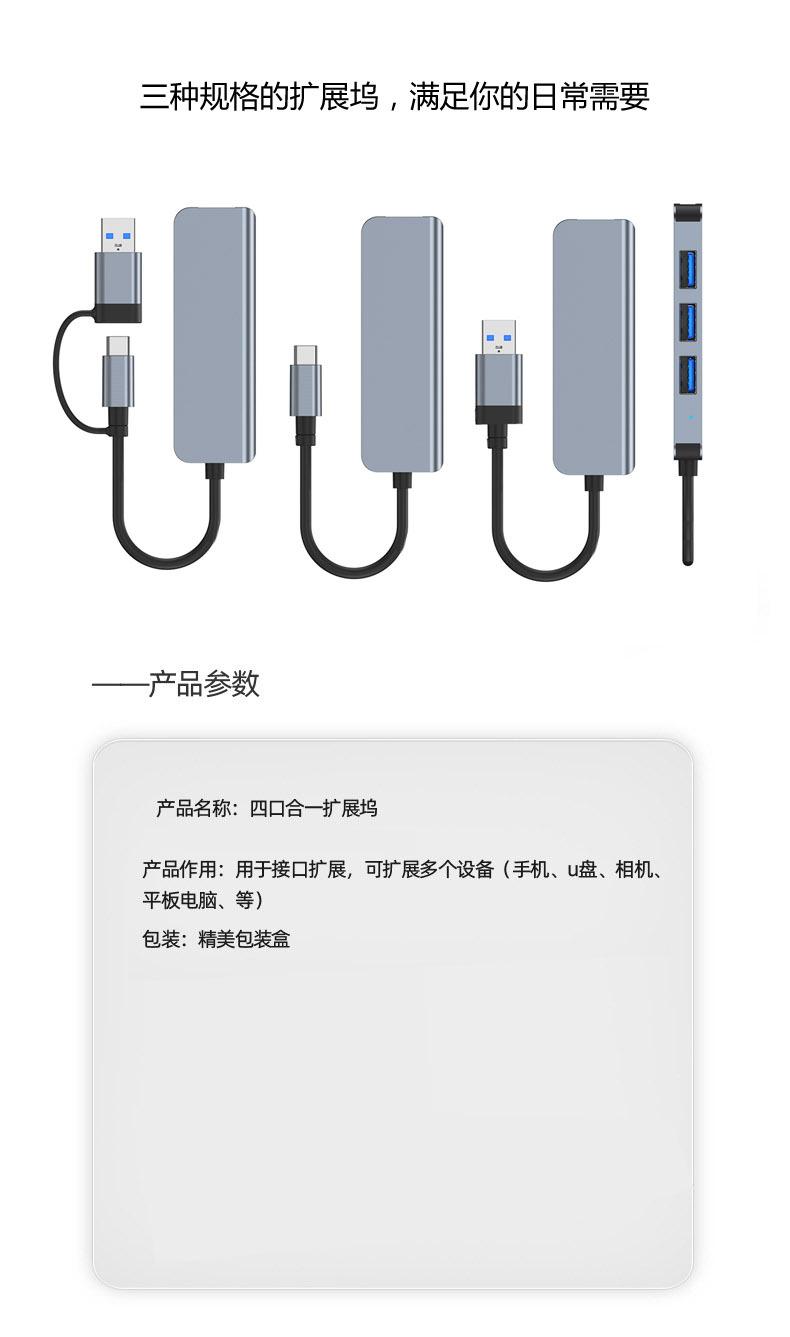 Concentrador USB 3.0 de alta velocidad, divisor y extensor, estación de expansión transfronteriza tipo C cuatro en uno