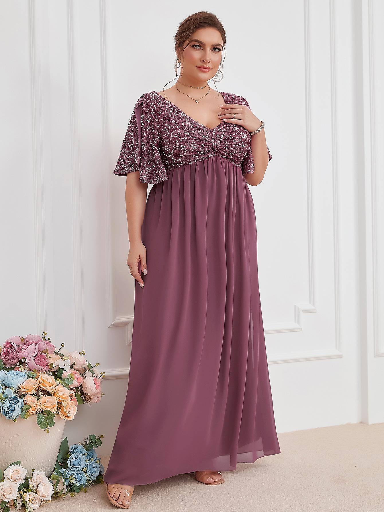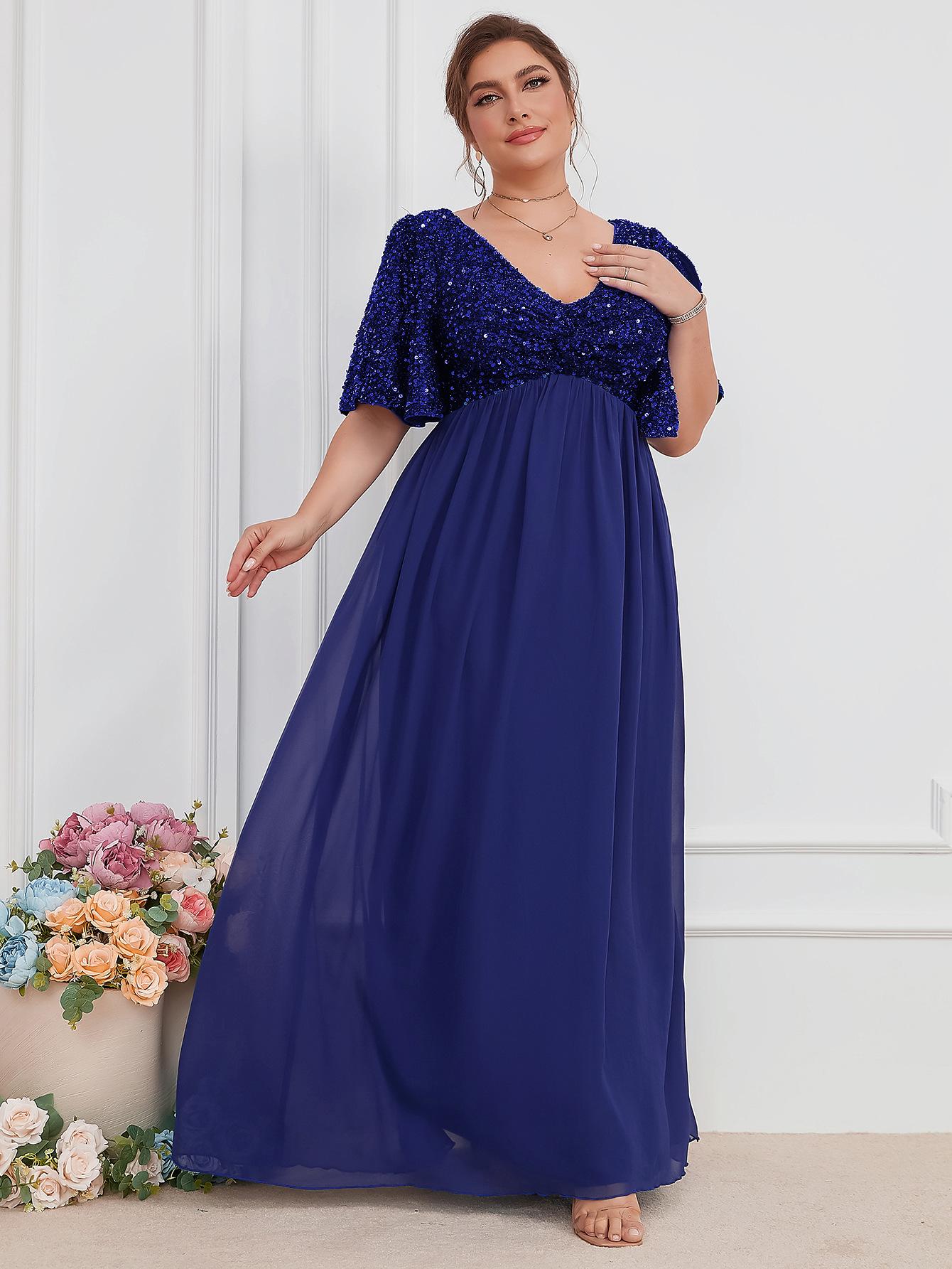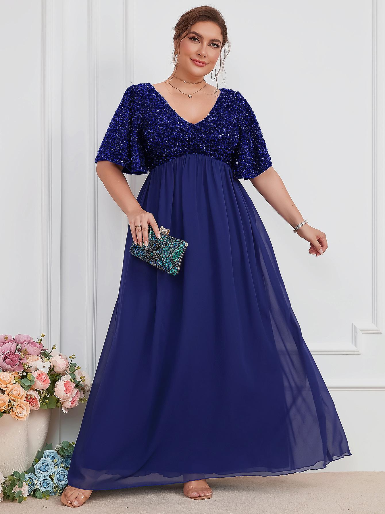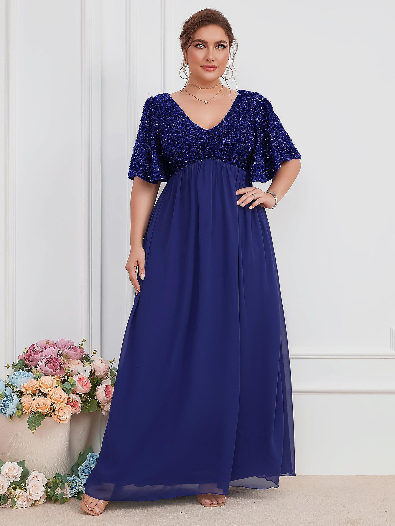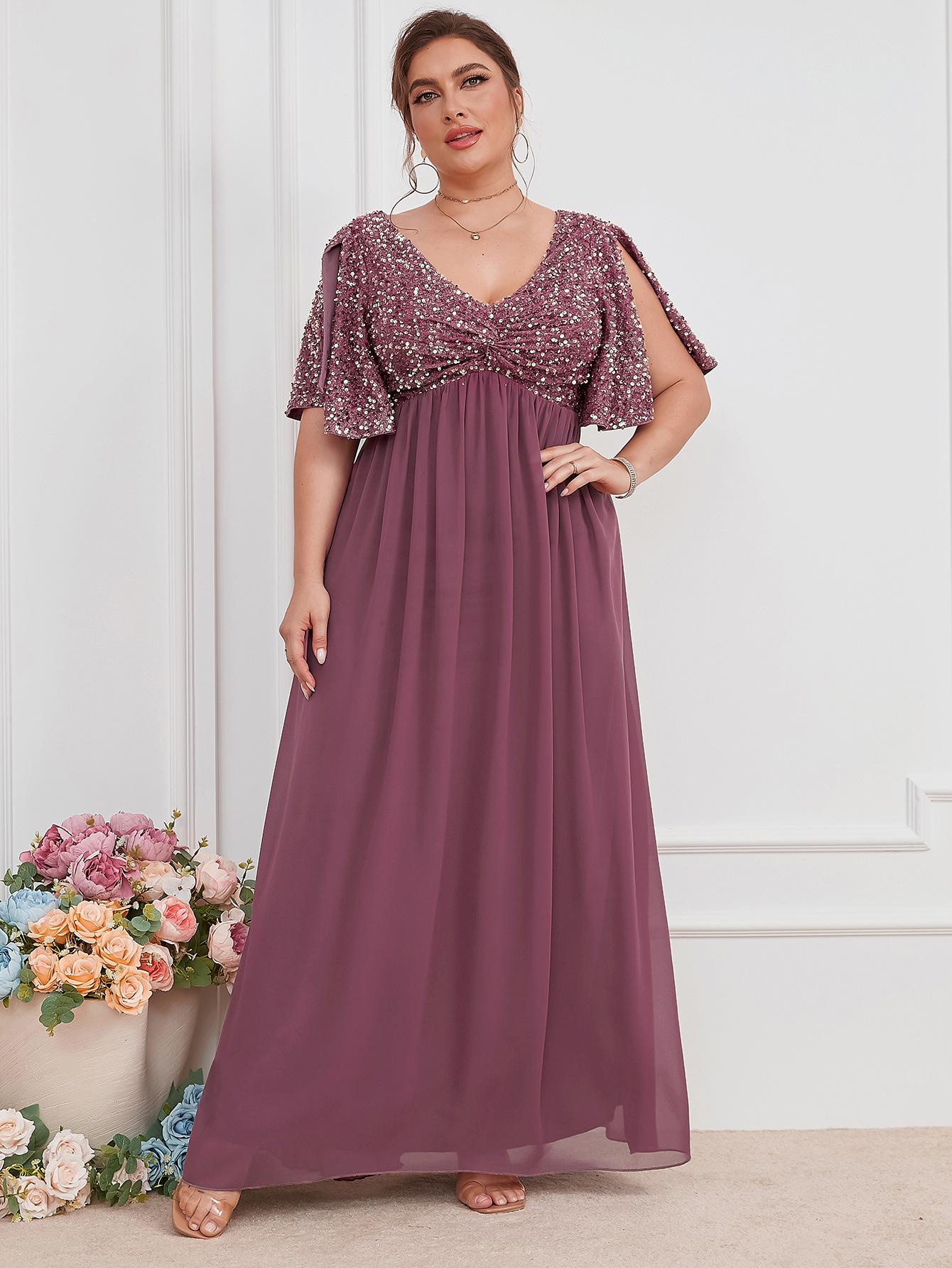 Vestido elegante de gasa con cuello en V y mangas acampanadas con lentejuelas para mujer, primavera y verano de 2024, estilo europeo y americano, con vuelo grande y falda larga