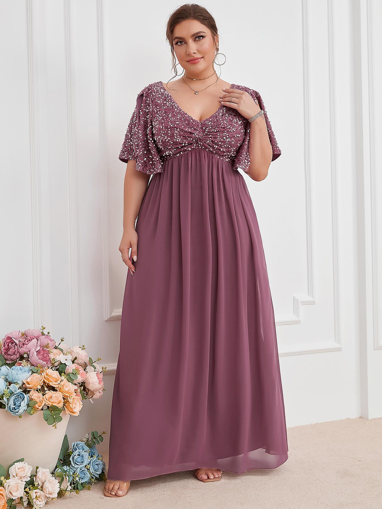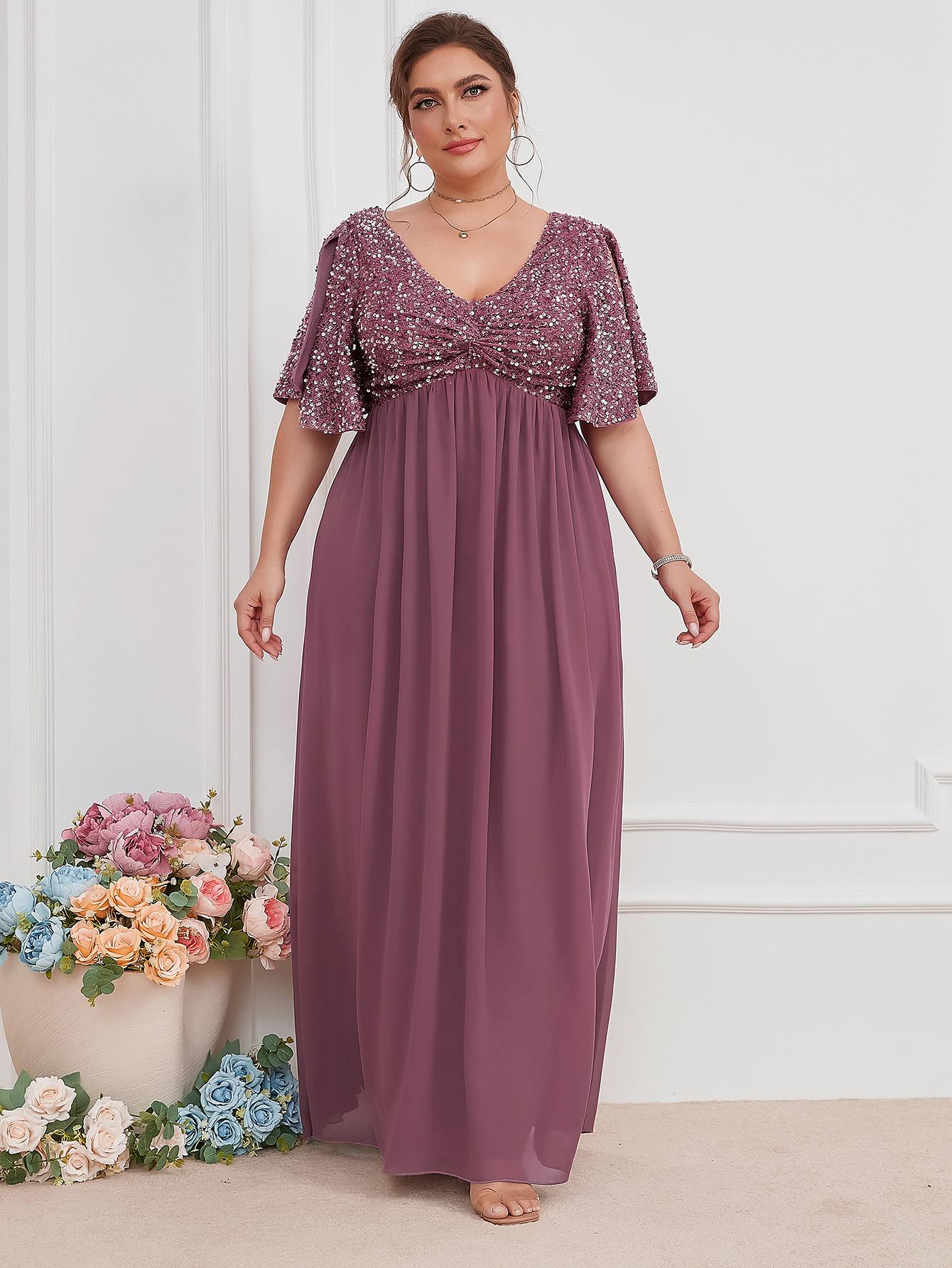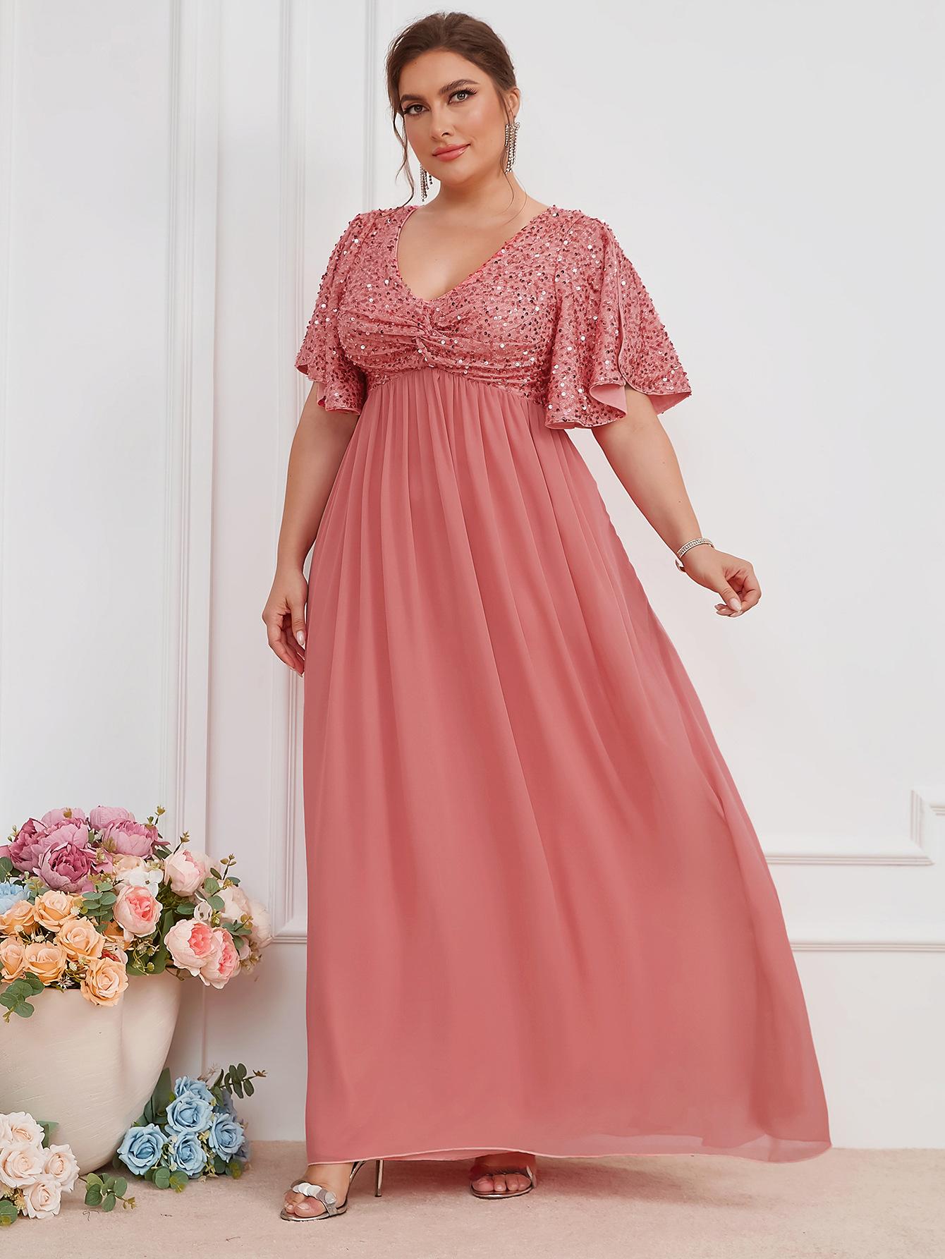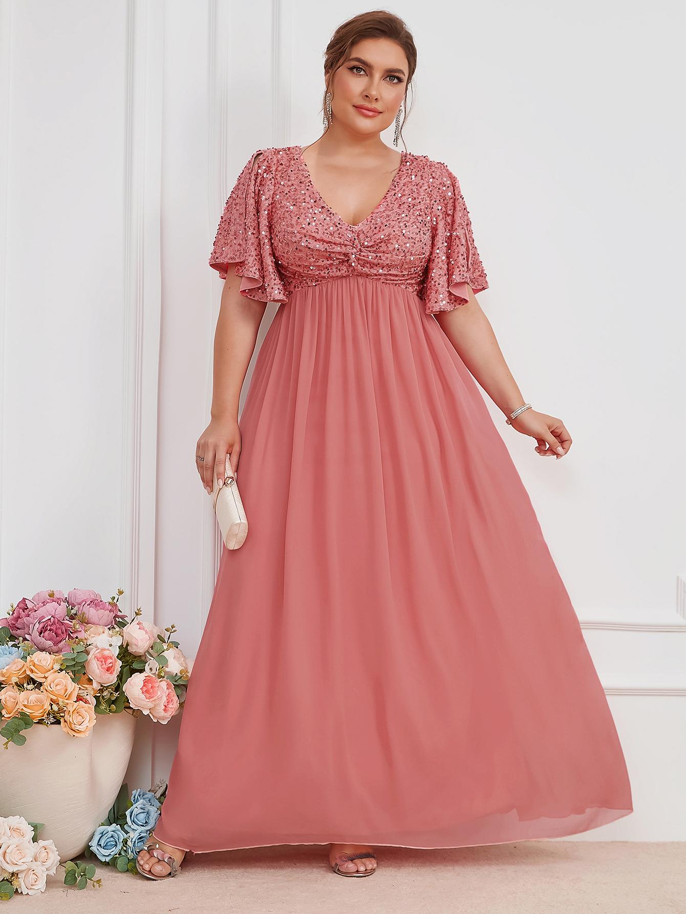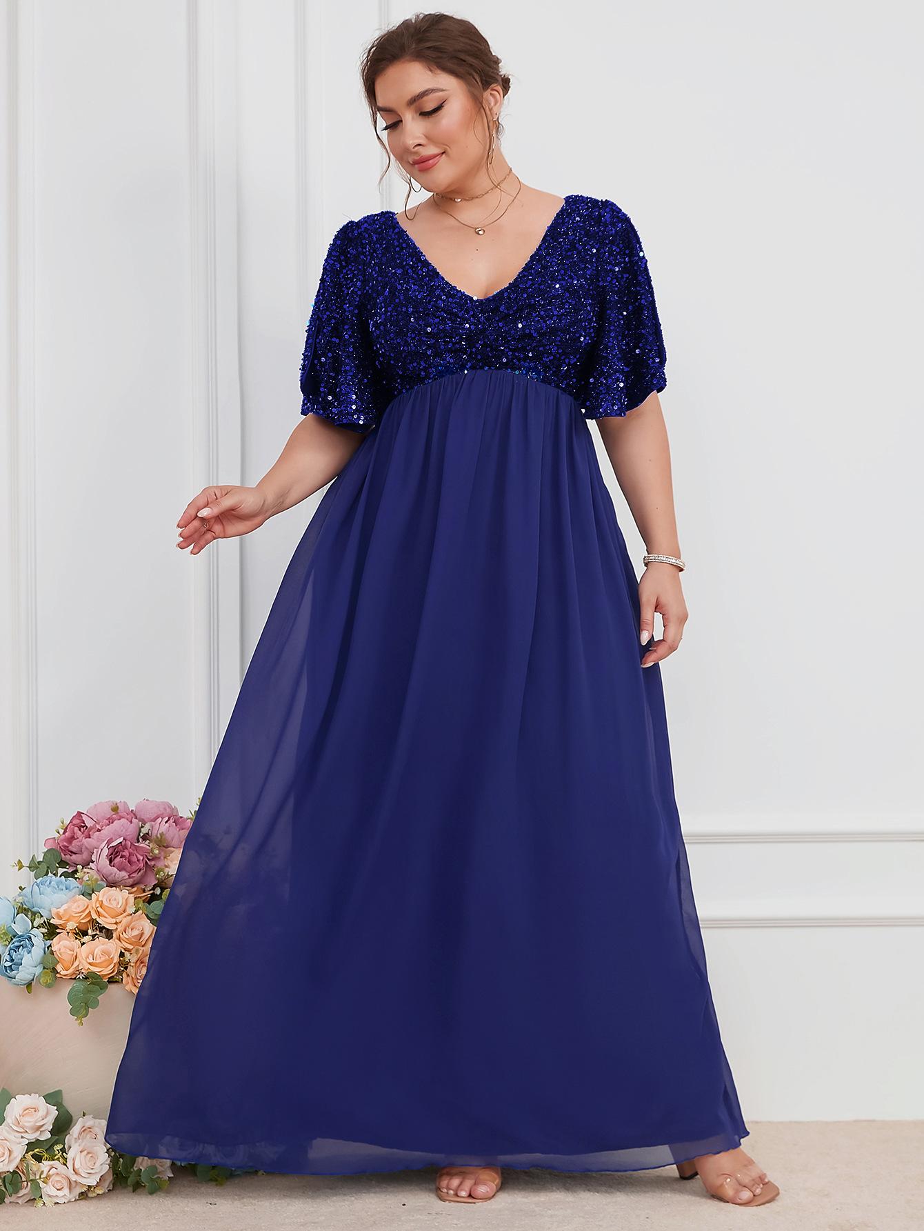 Vestido elegante de gasa con cuello en V y mangas acampanadas con lentejuelas para mujer, primavera y verano de 2024, estilo europeo y americano, con vuelo grande y falda larga