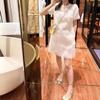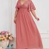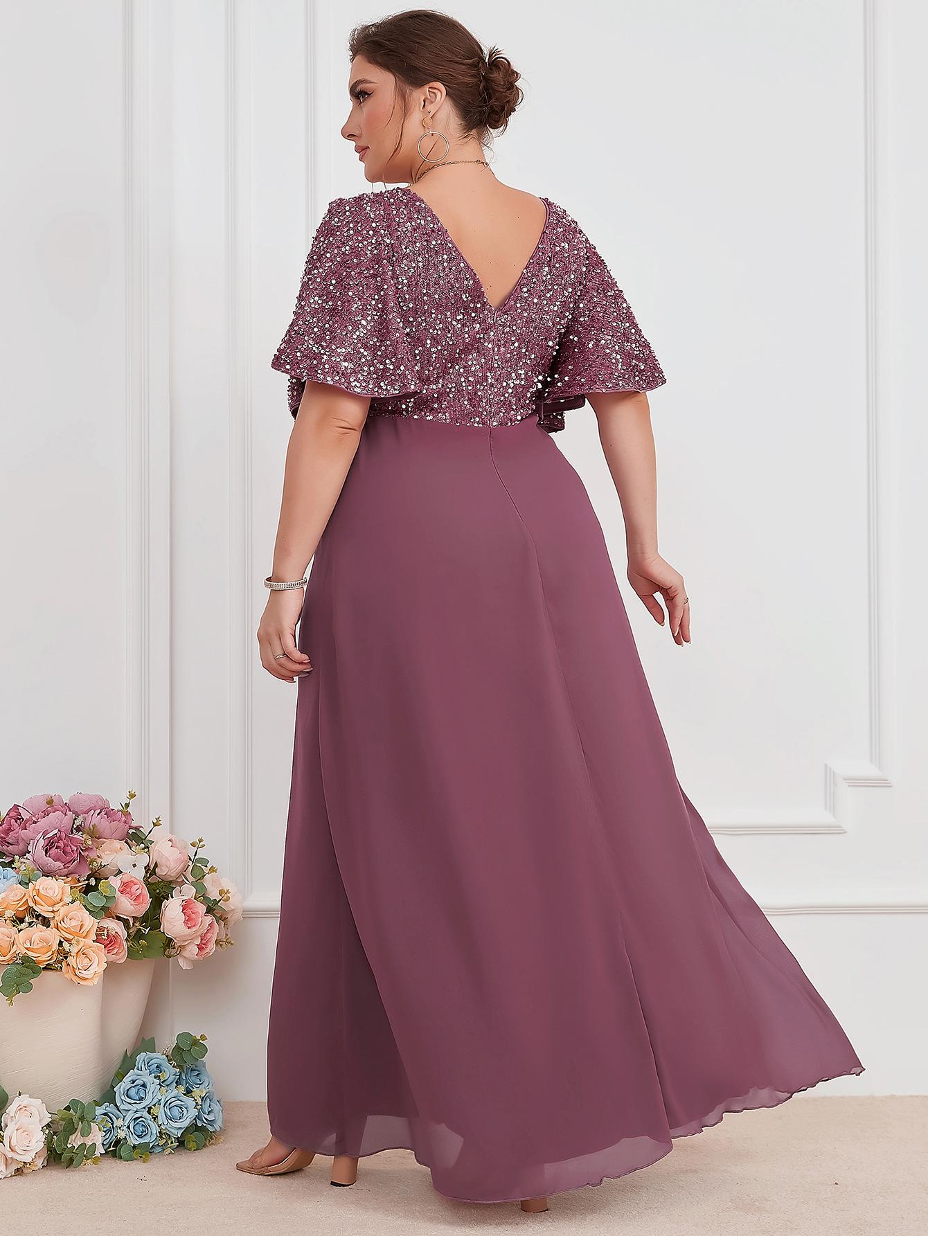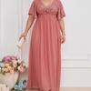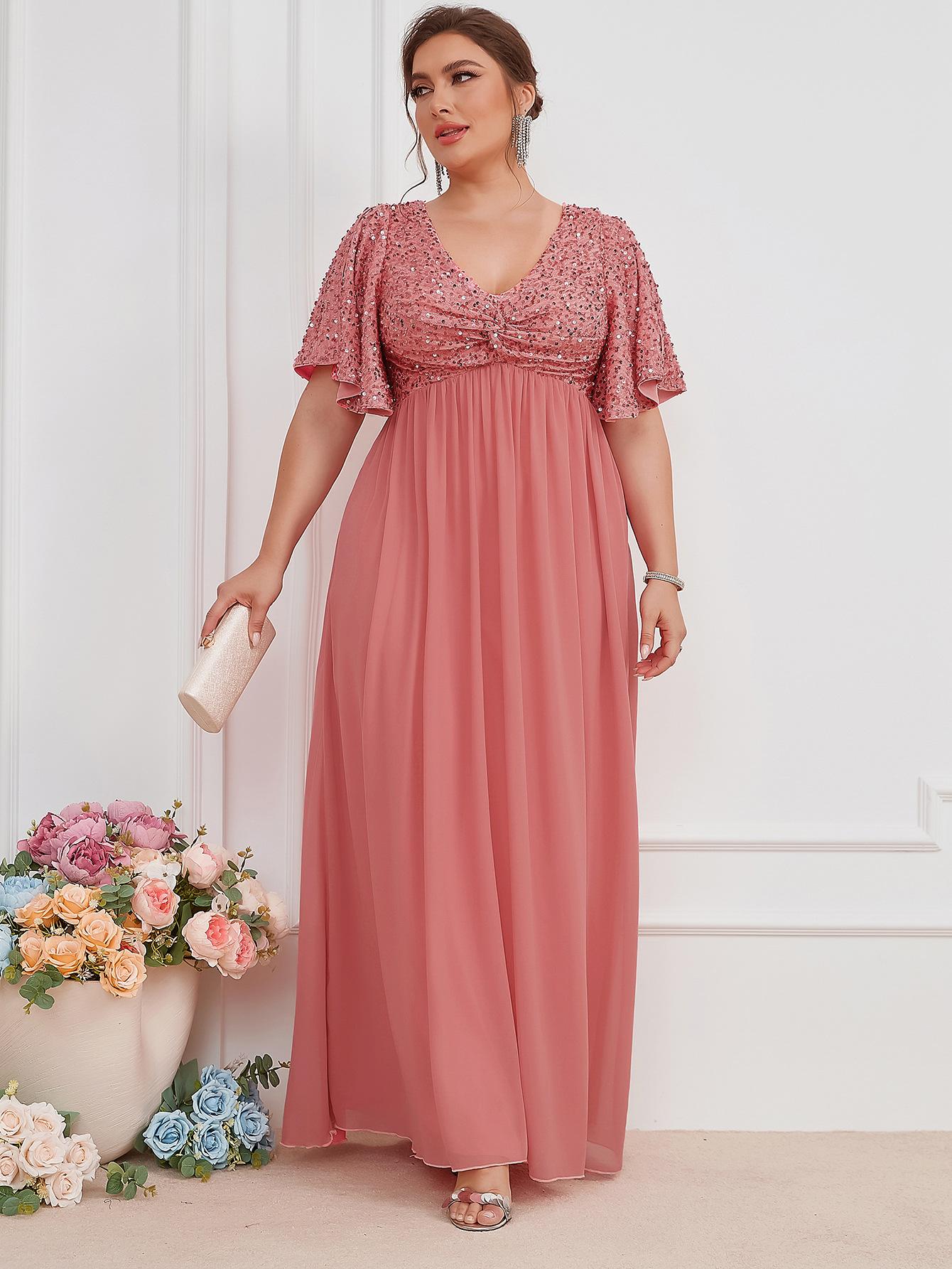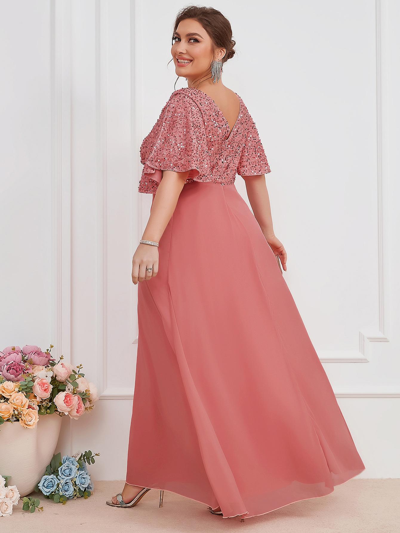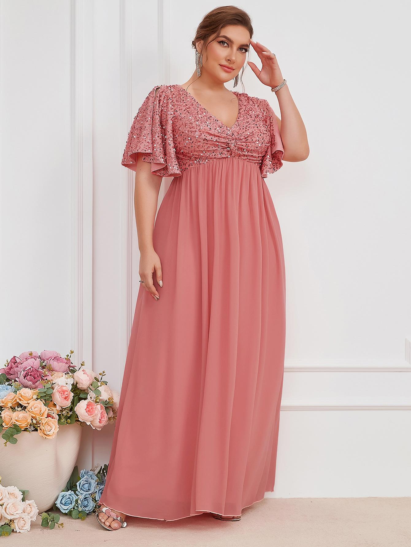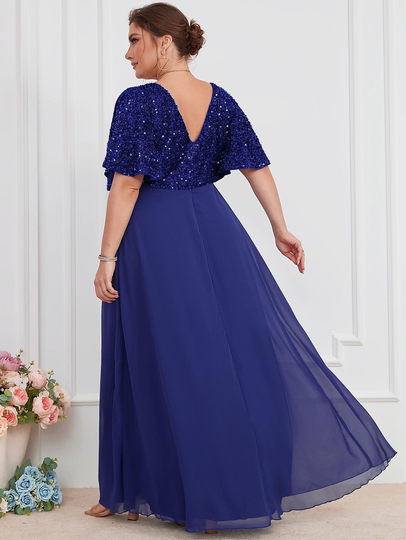 Vestido elegante de gasa con cuello en V y mangas acampanadas con lentejuelas para mujer, primavera y verano de 2024, estilo europeo y americano, con vuelo grande y falda larga