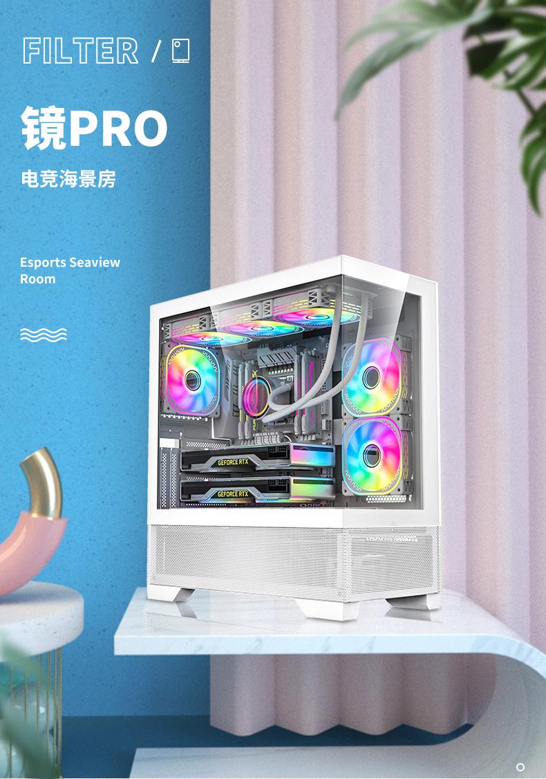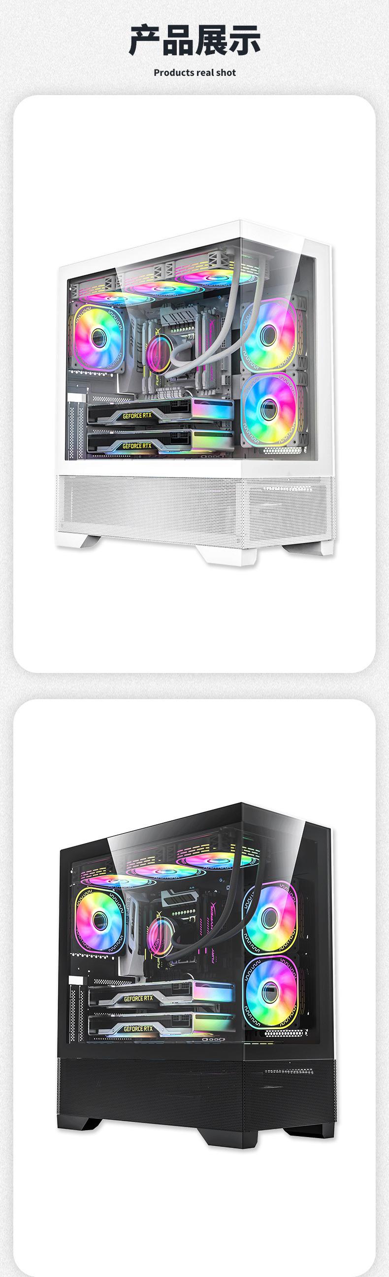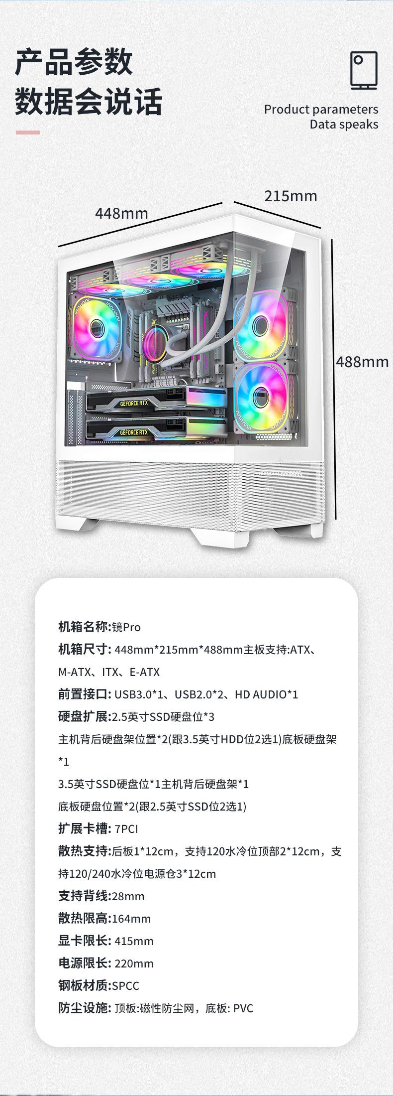 Gabinete PRO transparente con espejo para PC gaming, panel lateral de vidrio de 270°, paso de cables, caja para servidor CPU