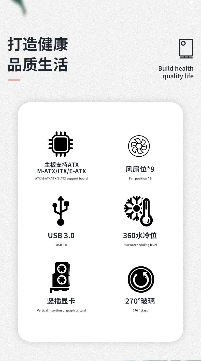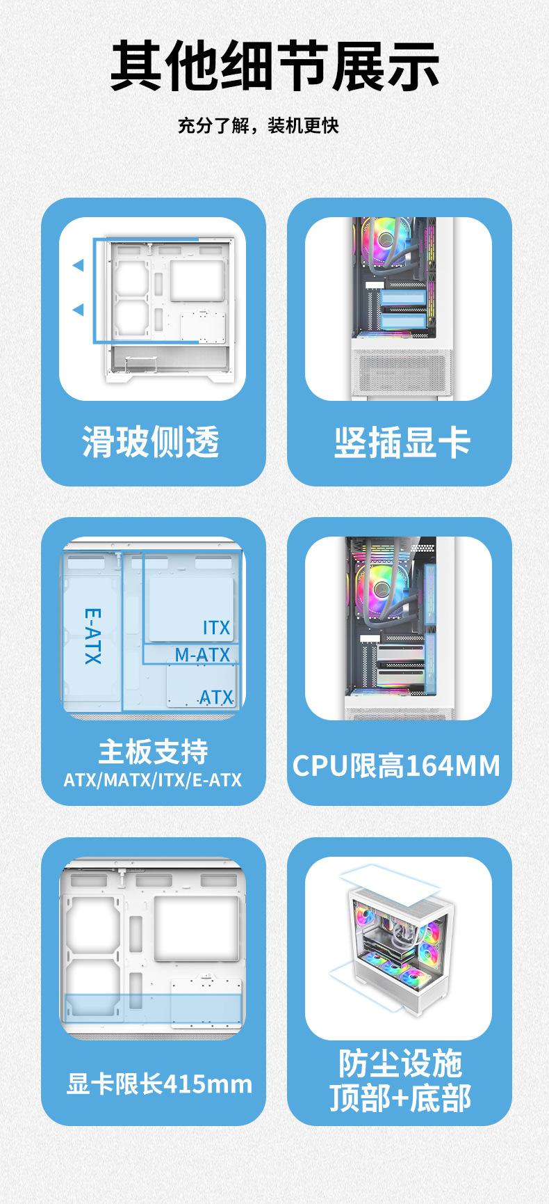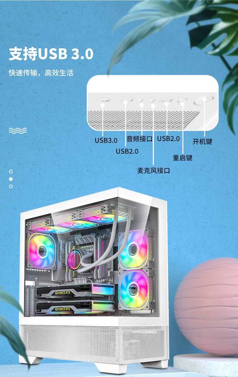 Gabinete PRO transparente con espejo para PC gaming, panel lateral de vidrio de 270°, paso de cables, caja para servidor CPU