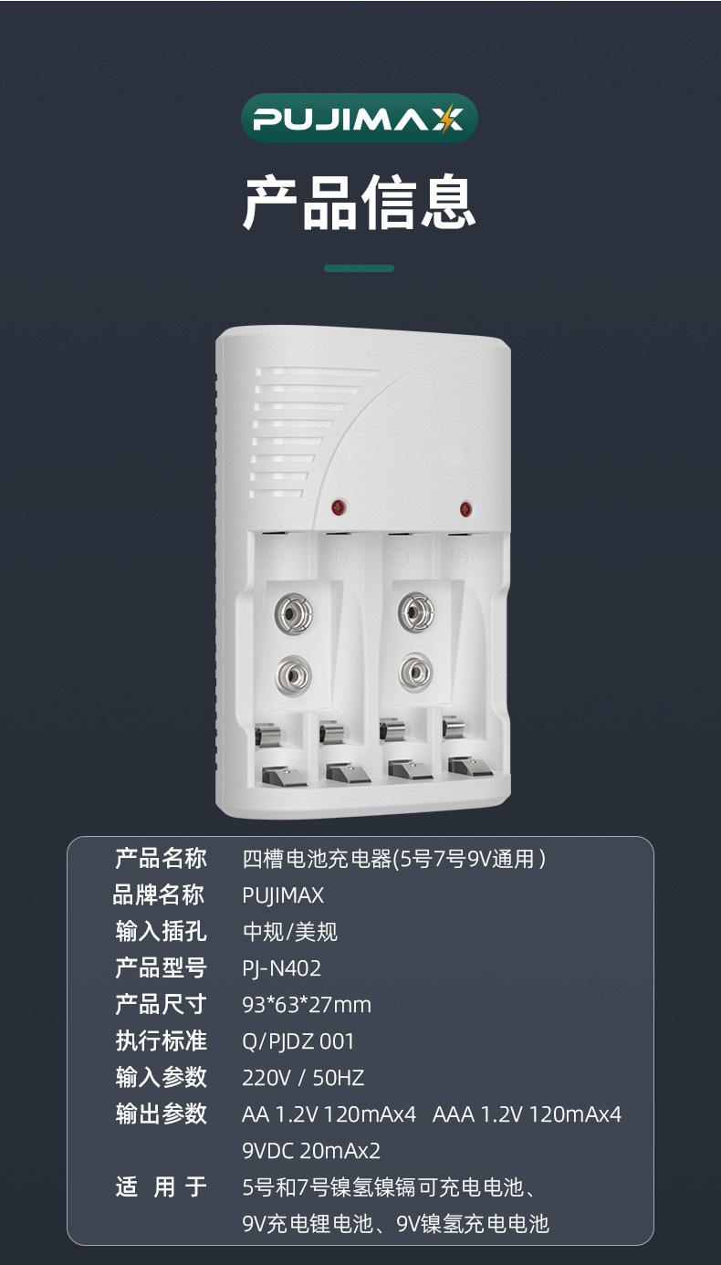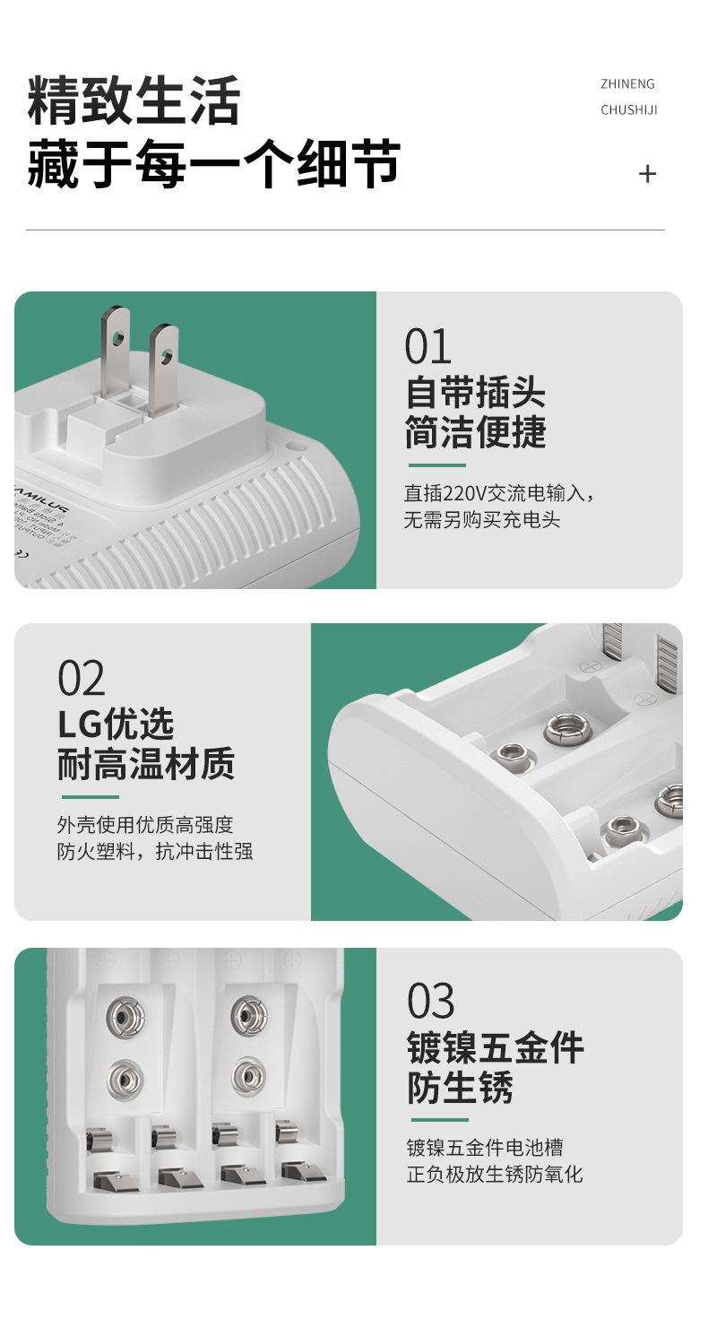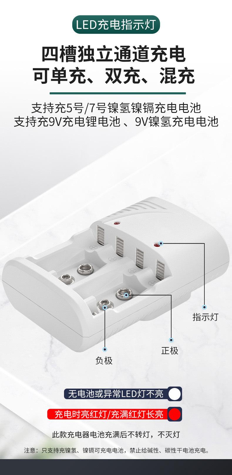 No. 5 No. 7 Batería recargable de 1.2V con cargador rápido inteligente universal de cuatro ranuras con canal independiente de 9V e indicador luminoso de giro