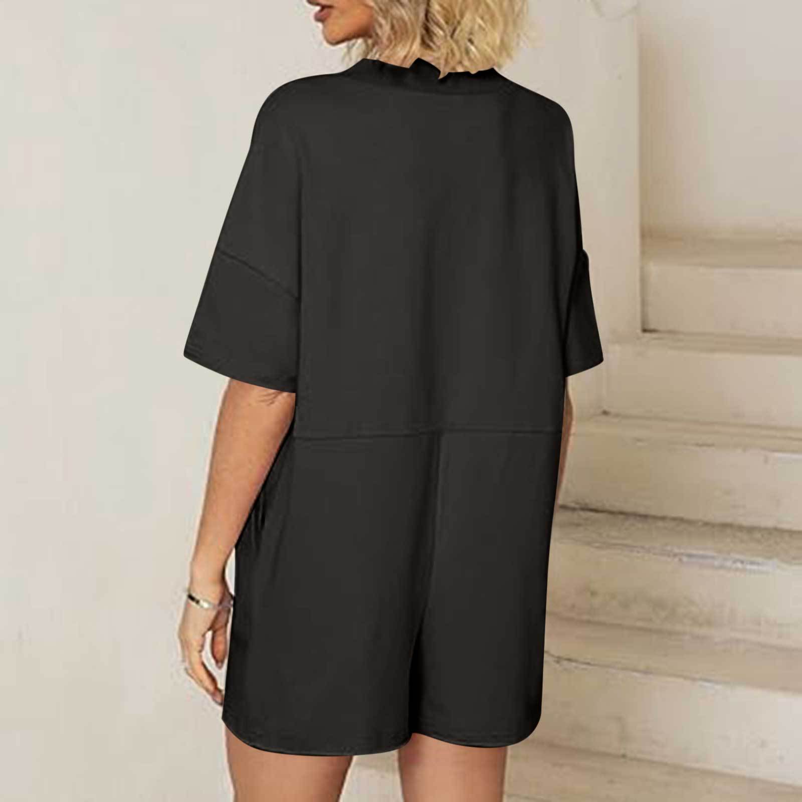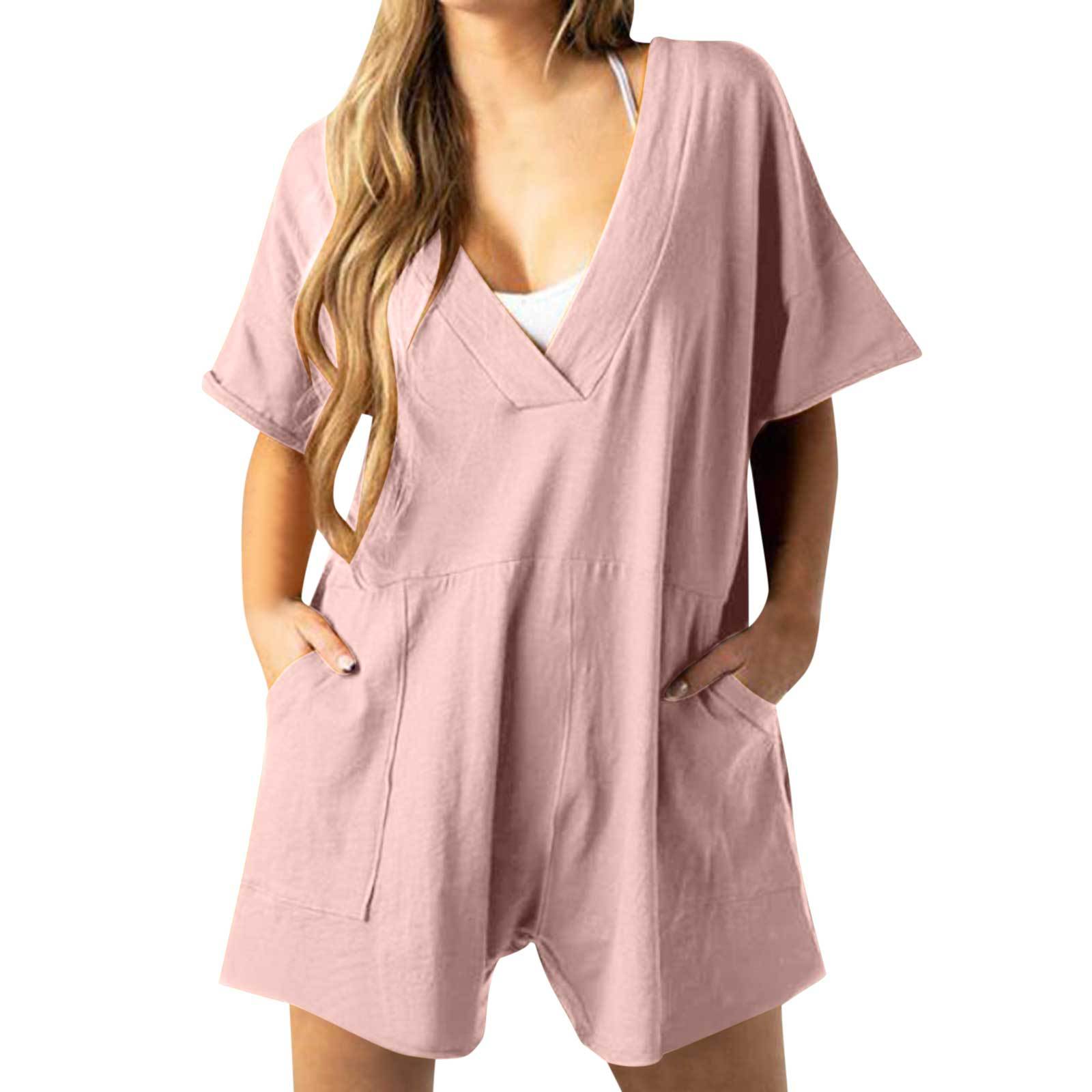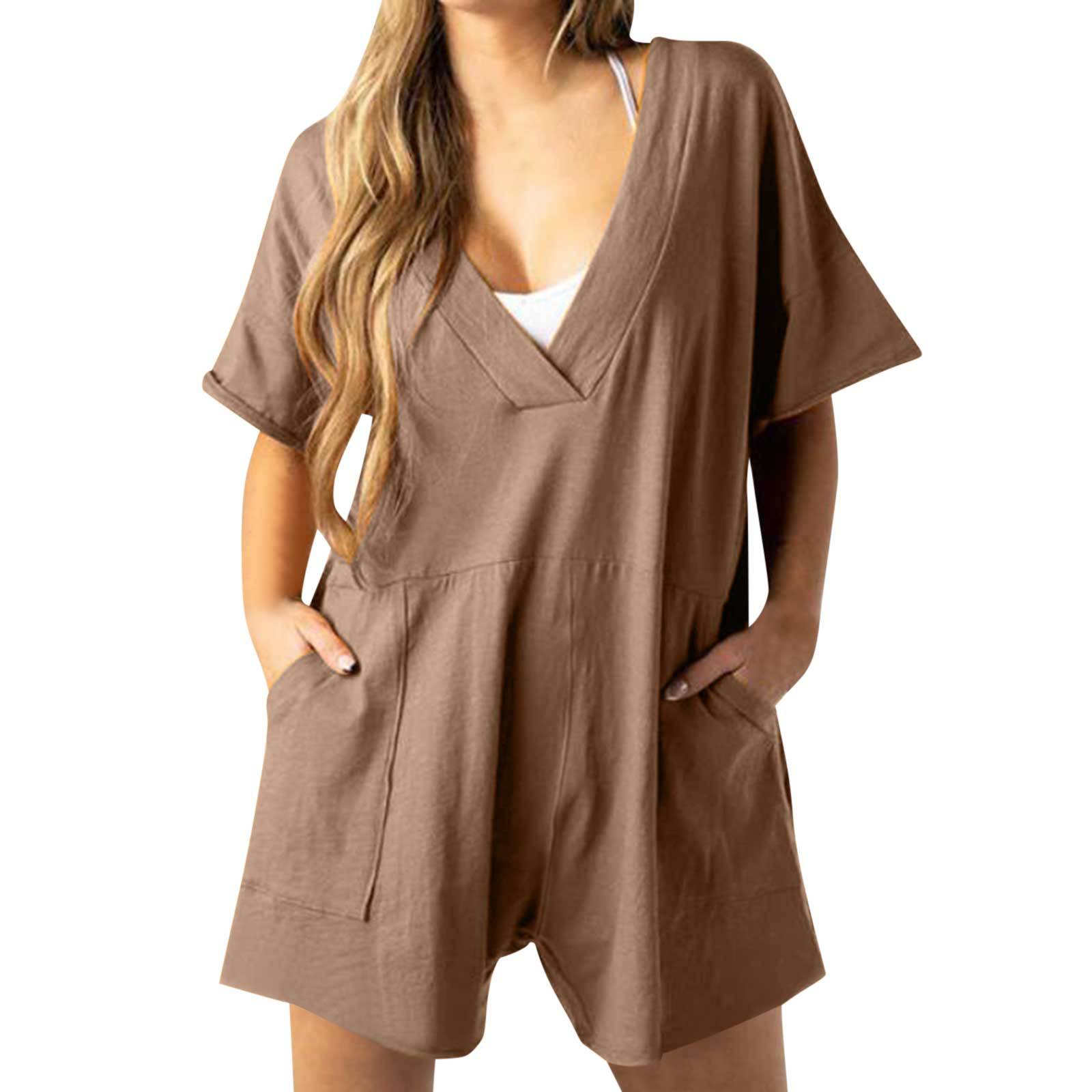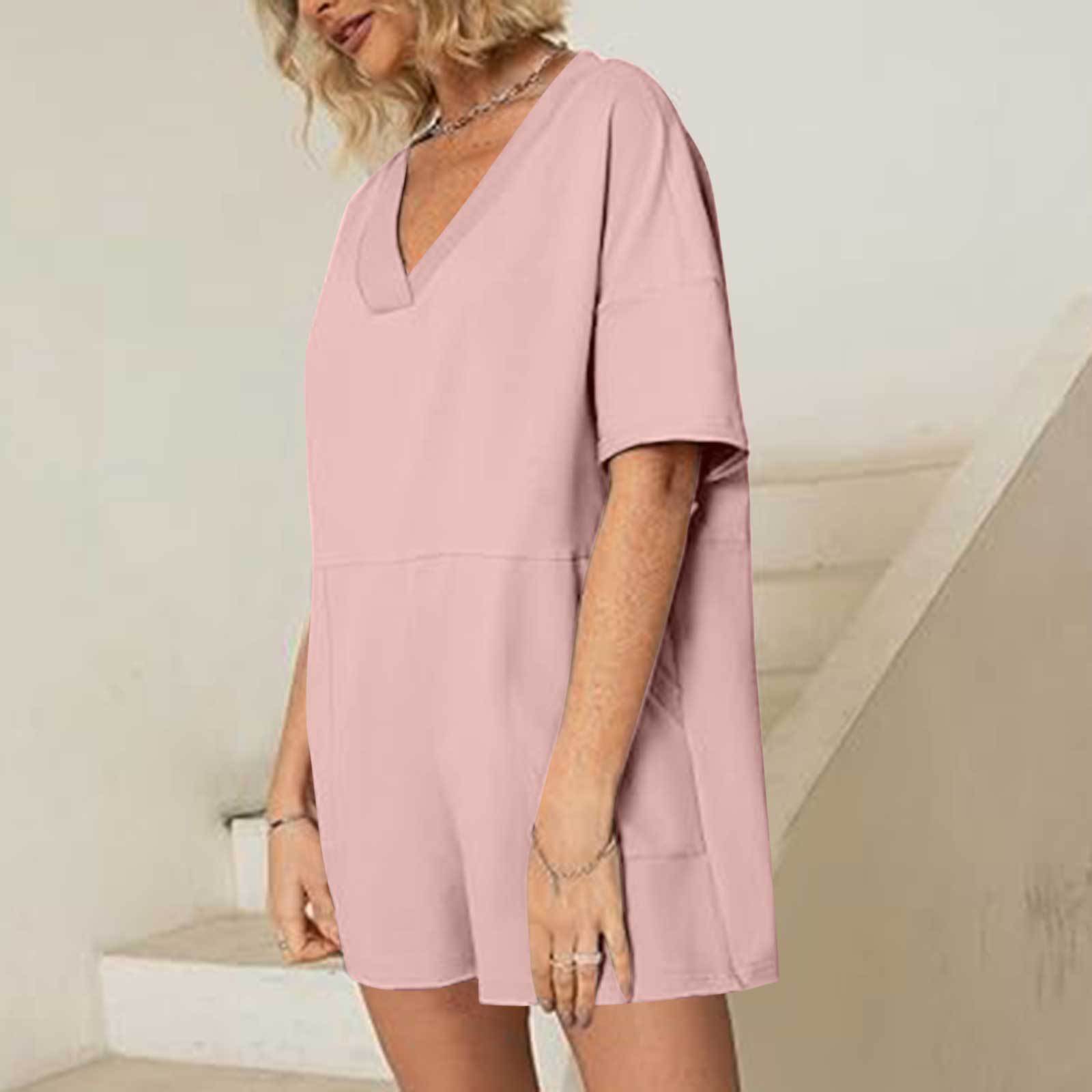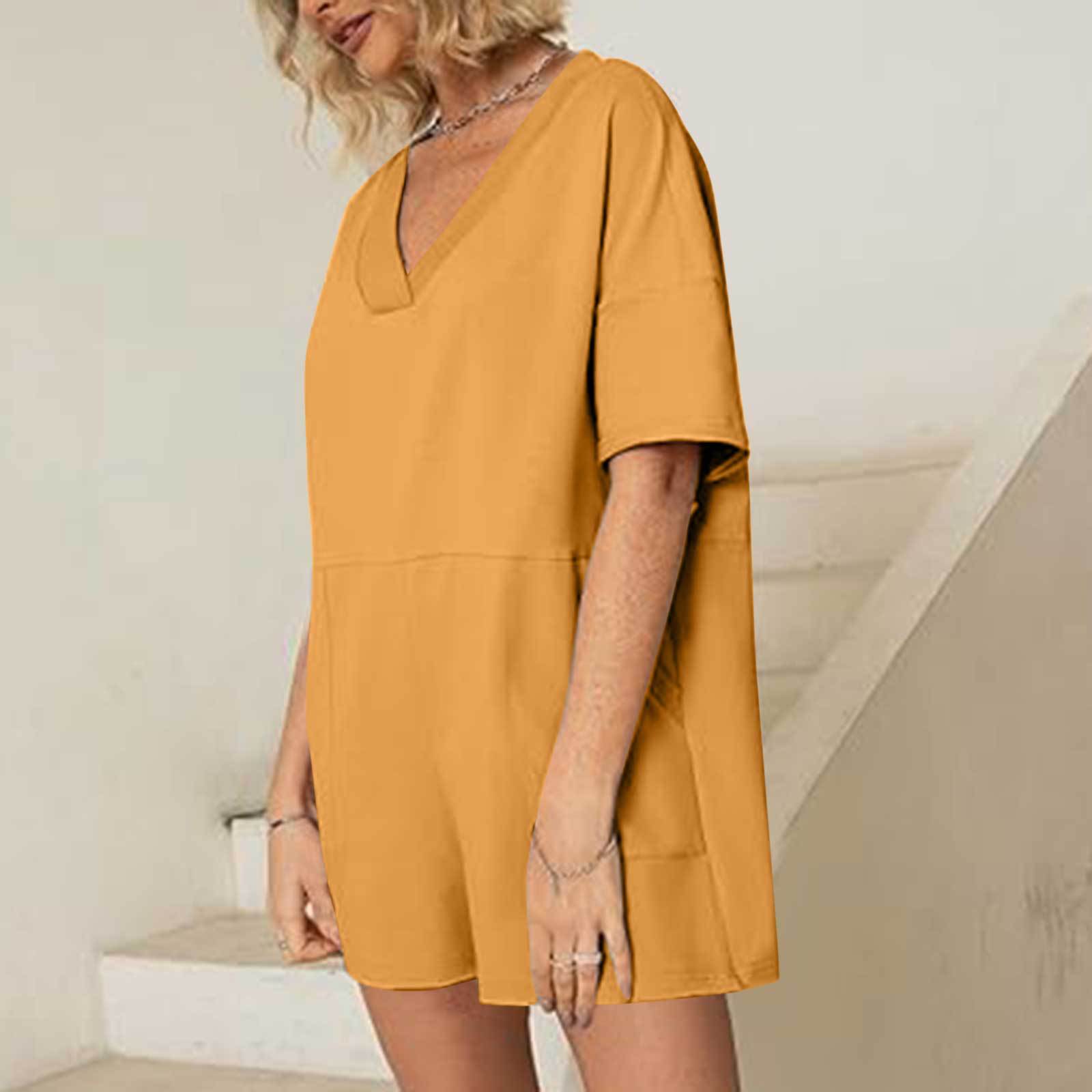 Mono de camiseta deportiva casual de verano grande con cuello en V suelto y bolsillo de manga corta