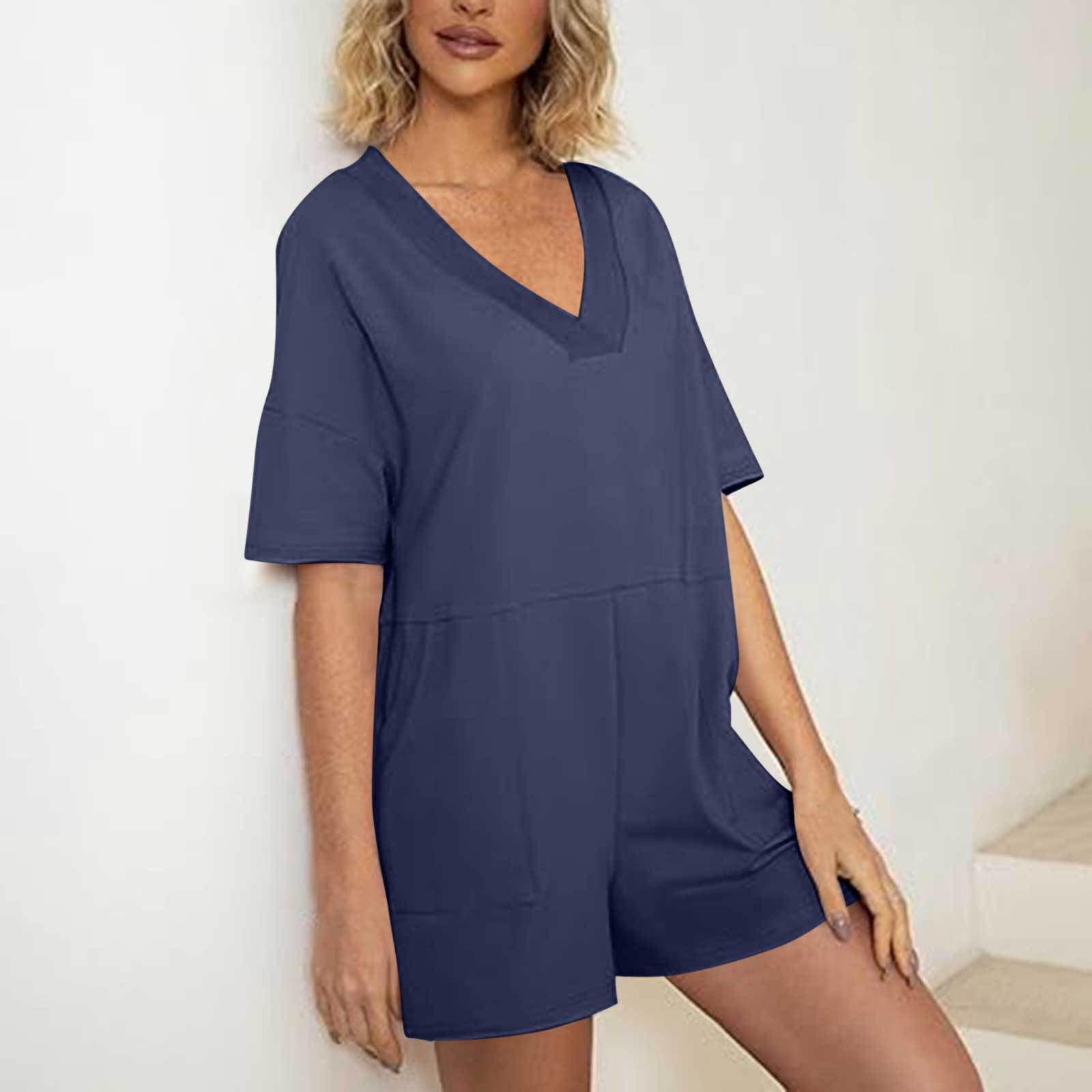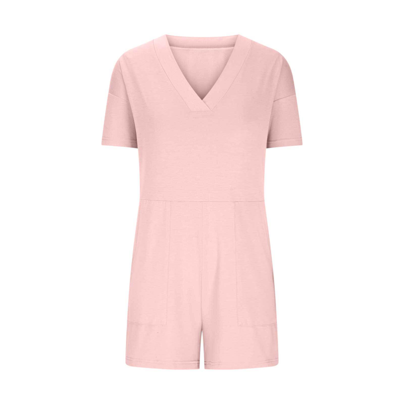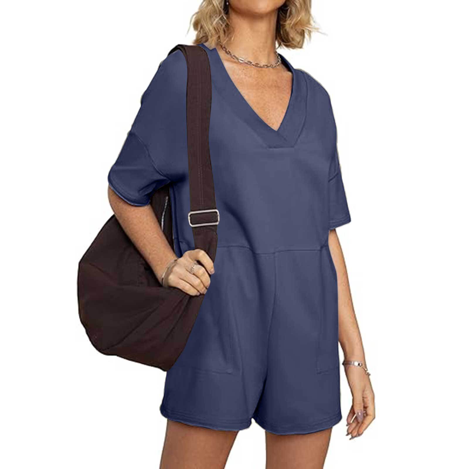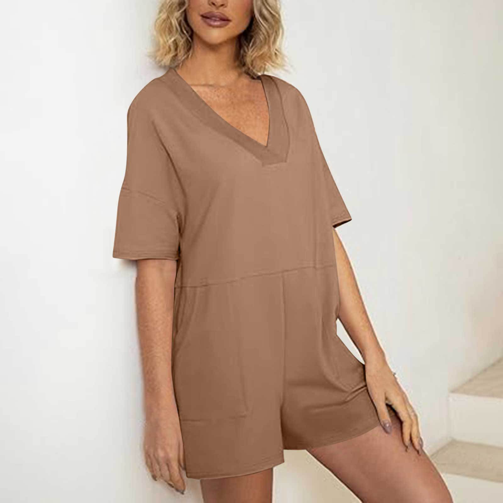 Mono de camiseta deportiva casual de verano grande con cuello en V suelto y bolsillo de manga corta