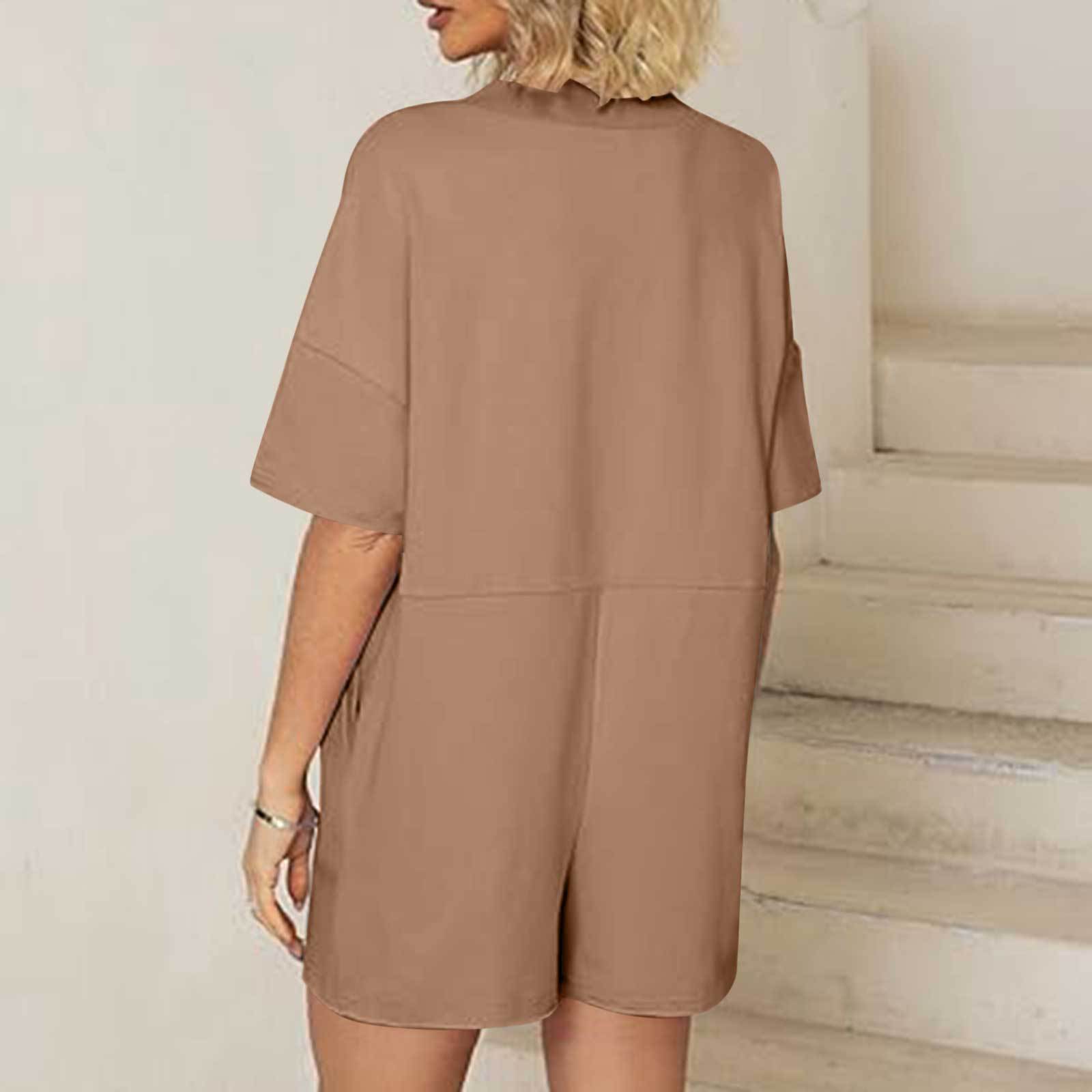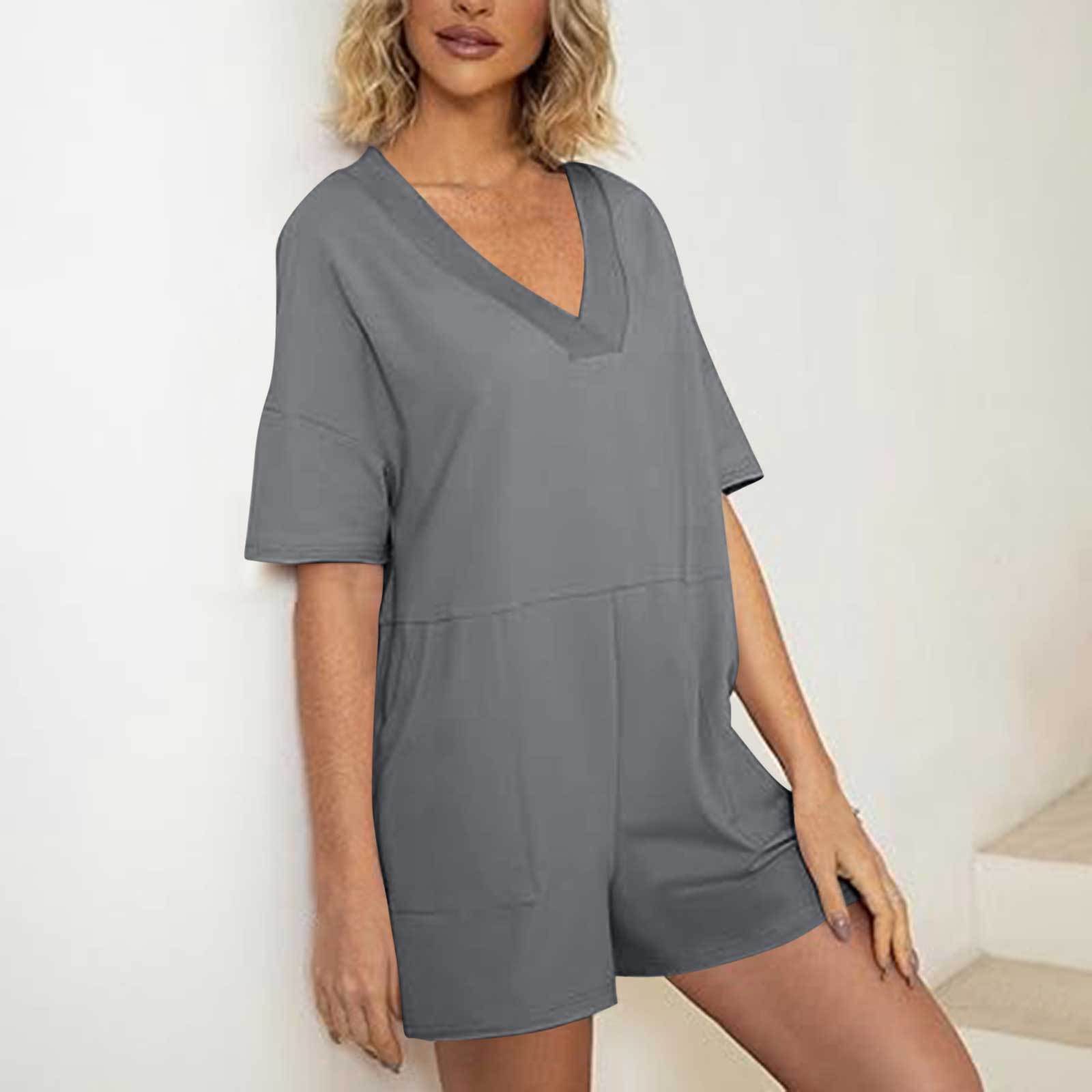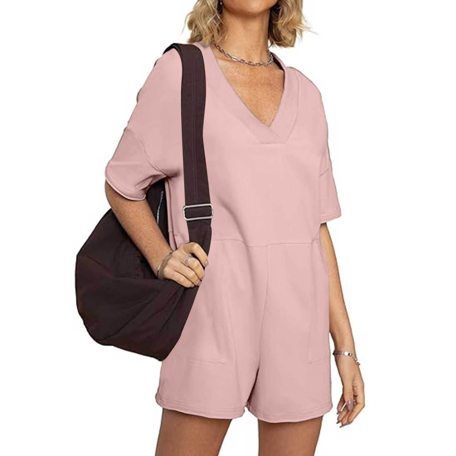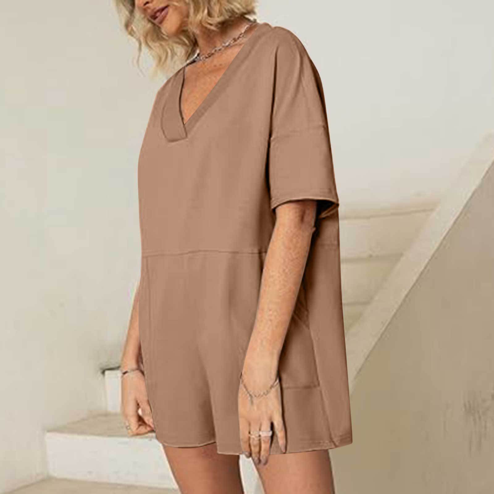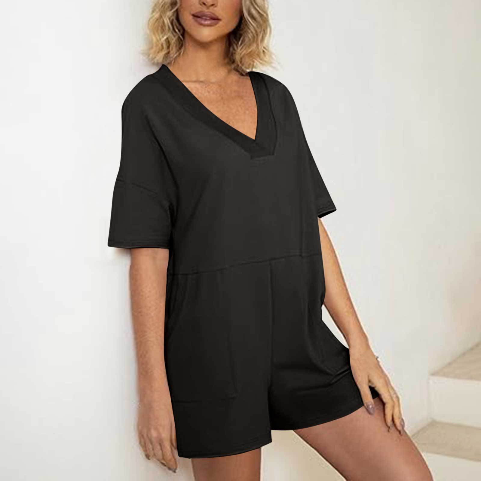 Mono de camiseta deportiva casual de verano grande con cuello en V suelto y bolsillo de manga corta