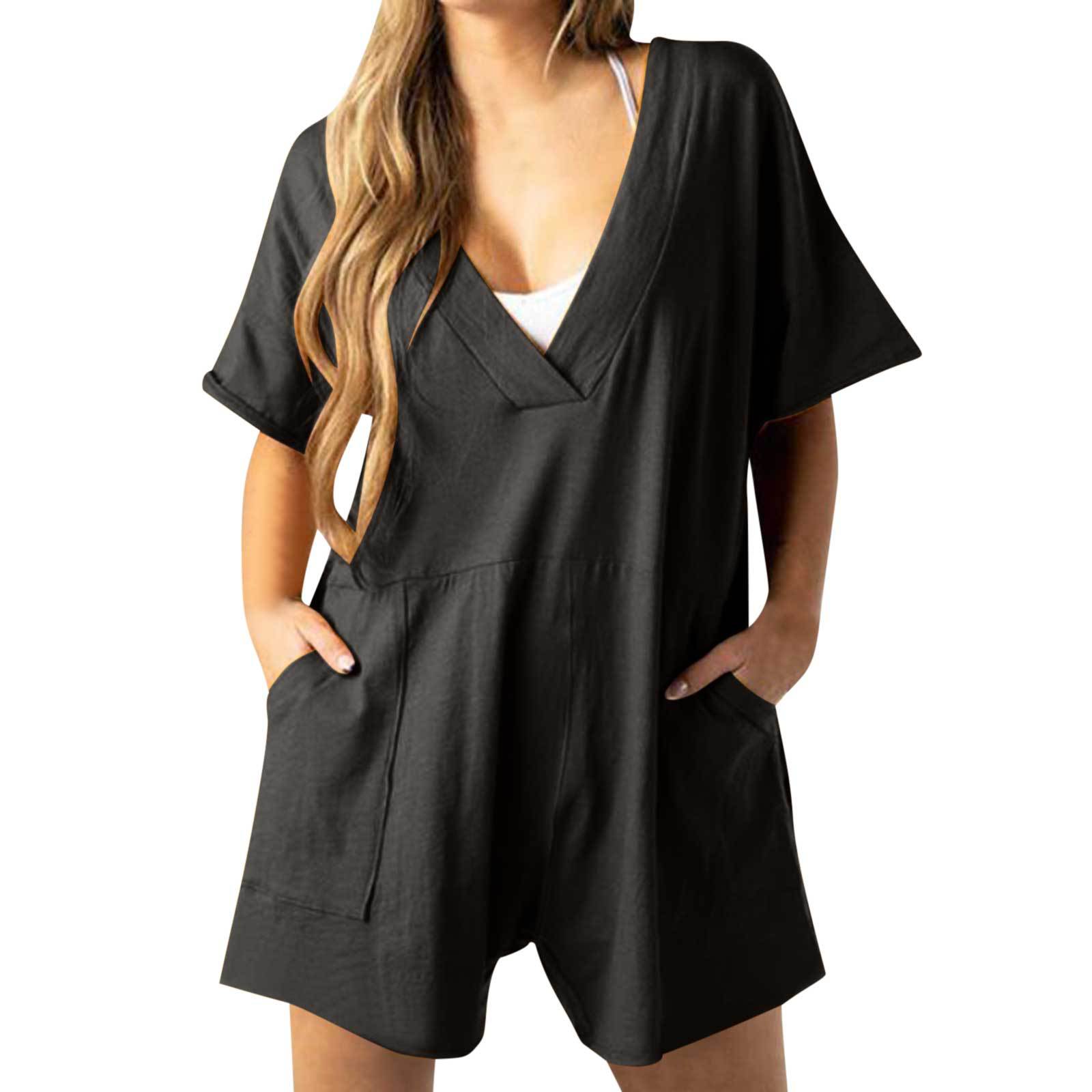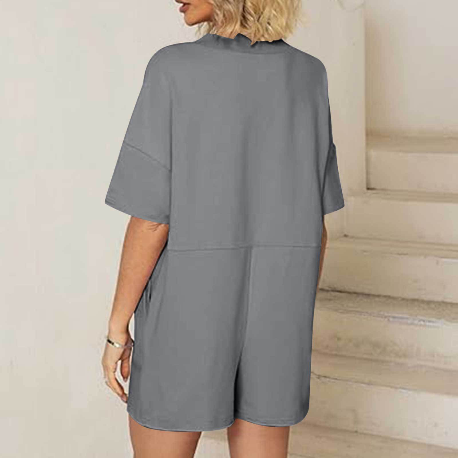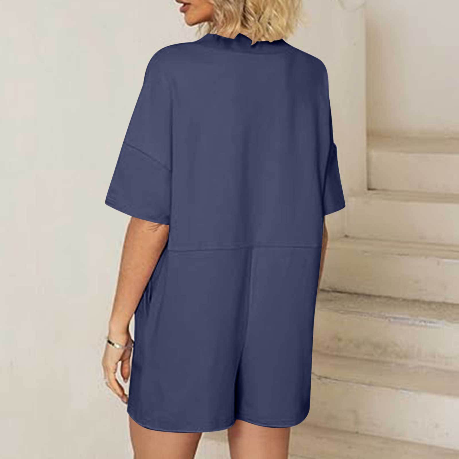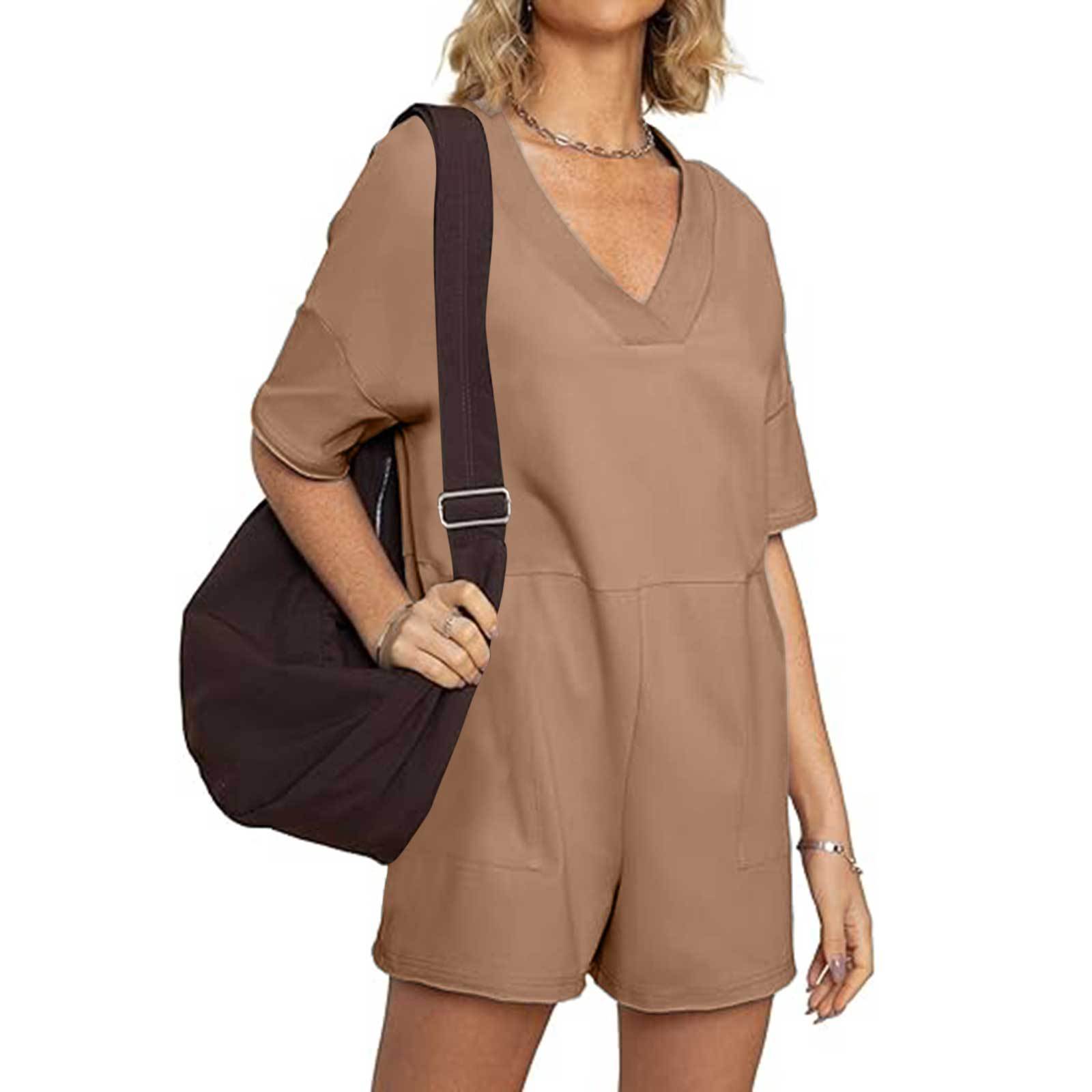 Mono de camiseta deportiva casual de verano grande con cuello en V suelto y bolsillo de manga corta