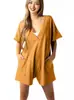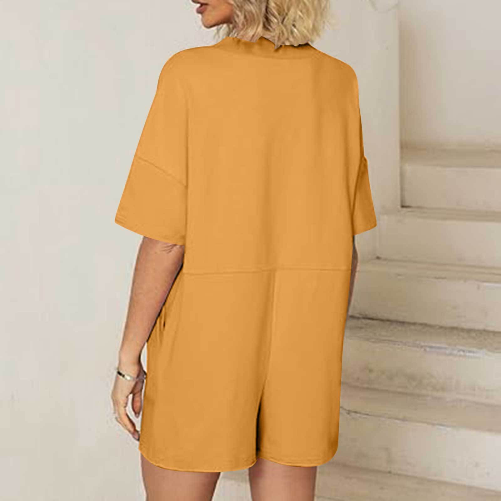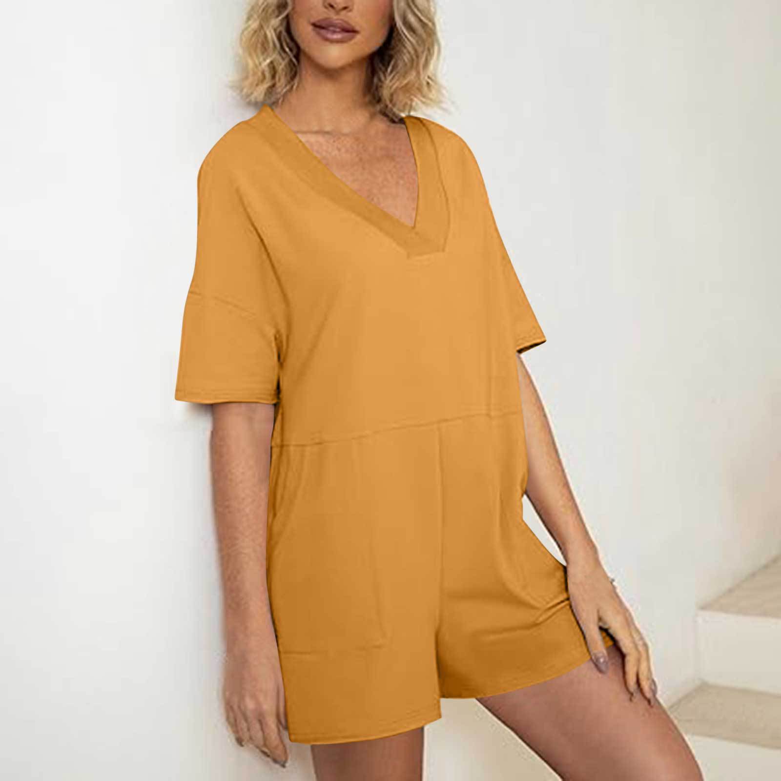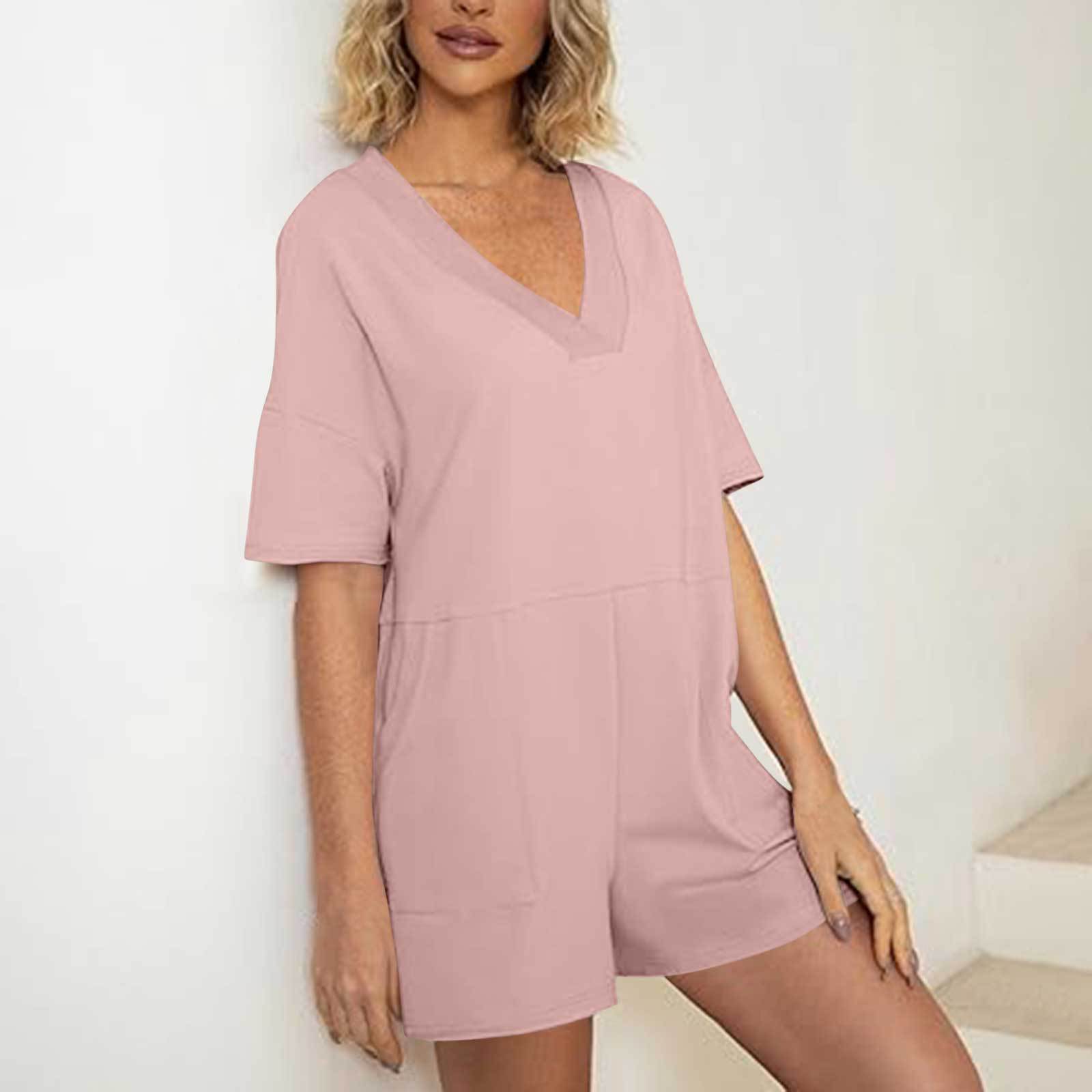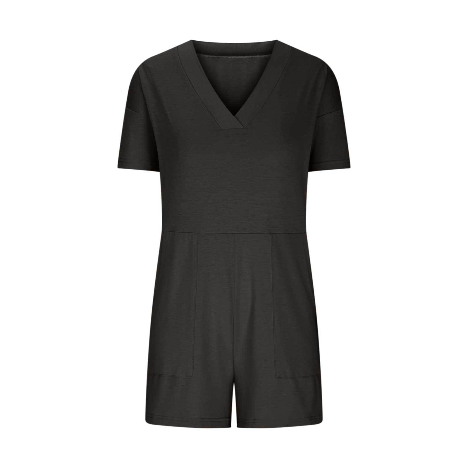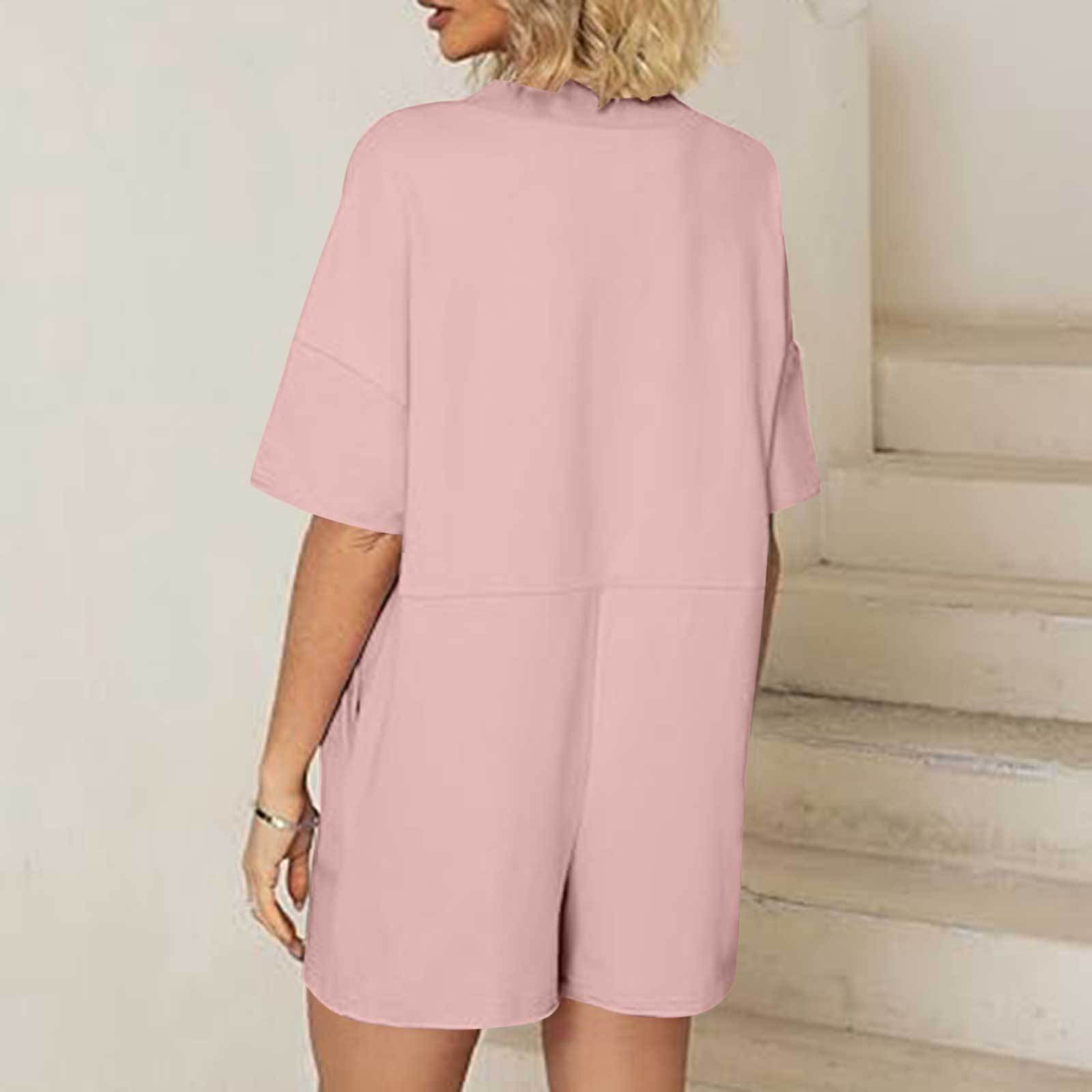 Mono de camiseta deportiva casual de verano grande con cuello en V suelto y bolsillo de manga corta