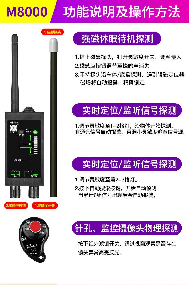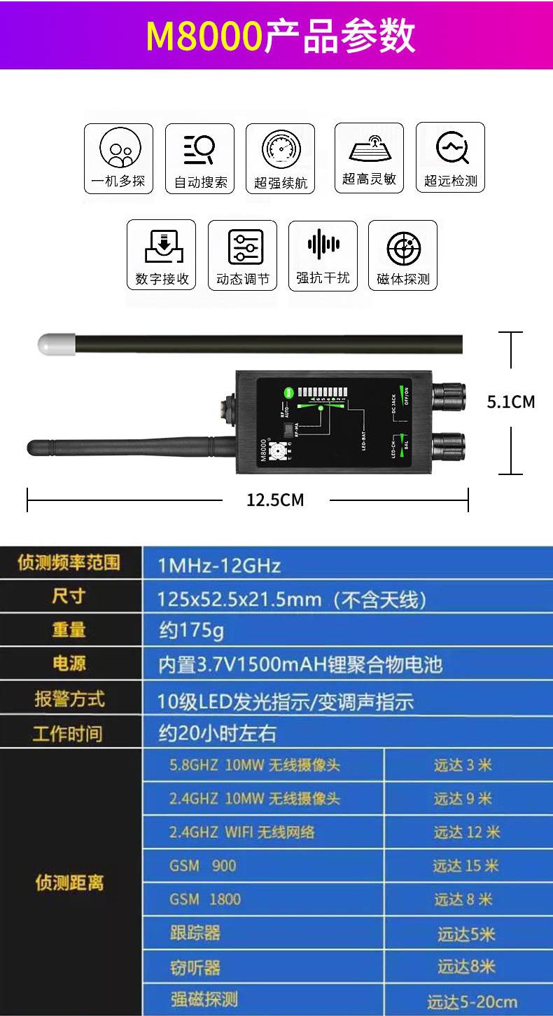 Detector de señal inalámbrica M8000 con cámara anti-escondida, anti-monitoreo y anti-posicionamiento, cámara de detección y monitor localizador.
