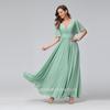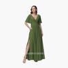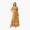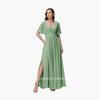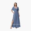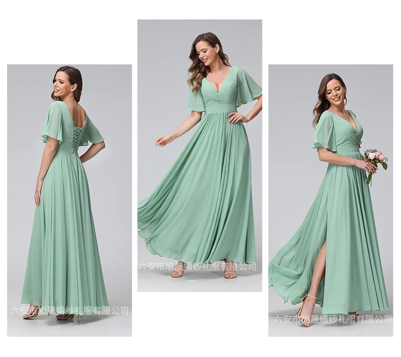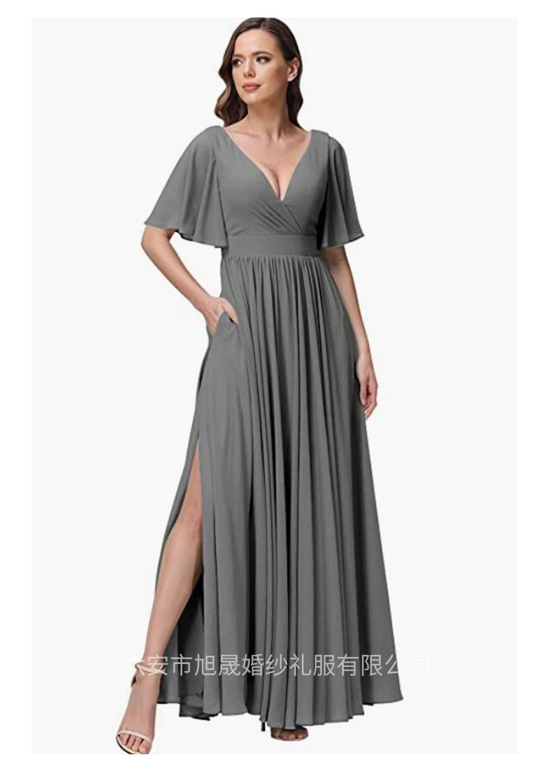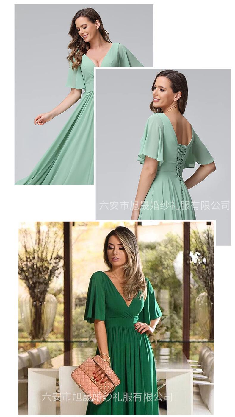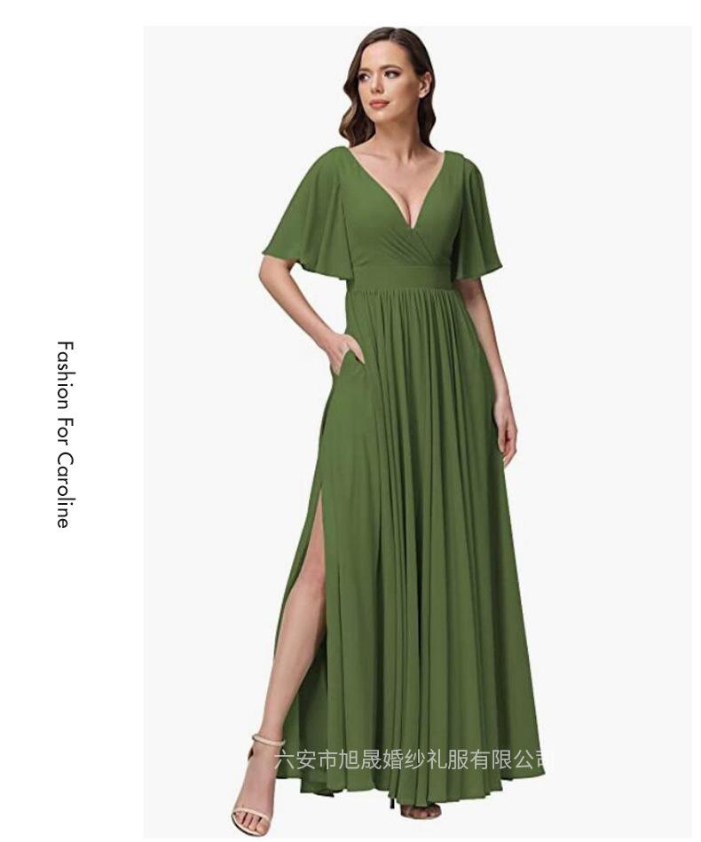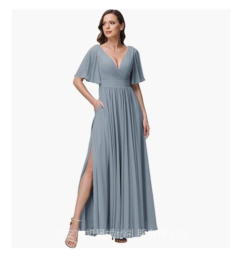 Vestido de dama de honor largo con escote en V y mangas mariposa, cintura alta, adelgazante, con bolsillo y abertura en gasa.