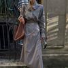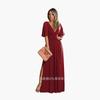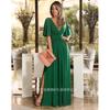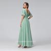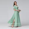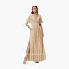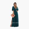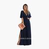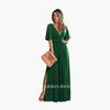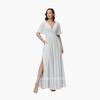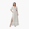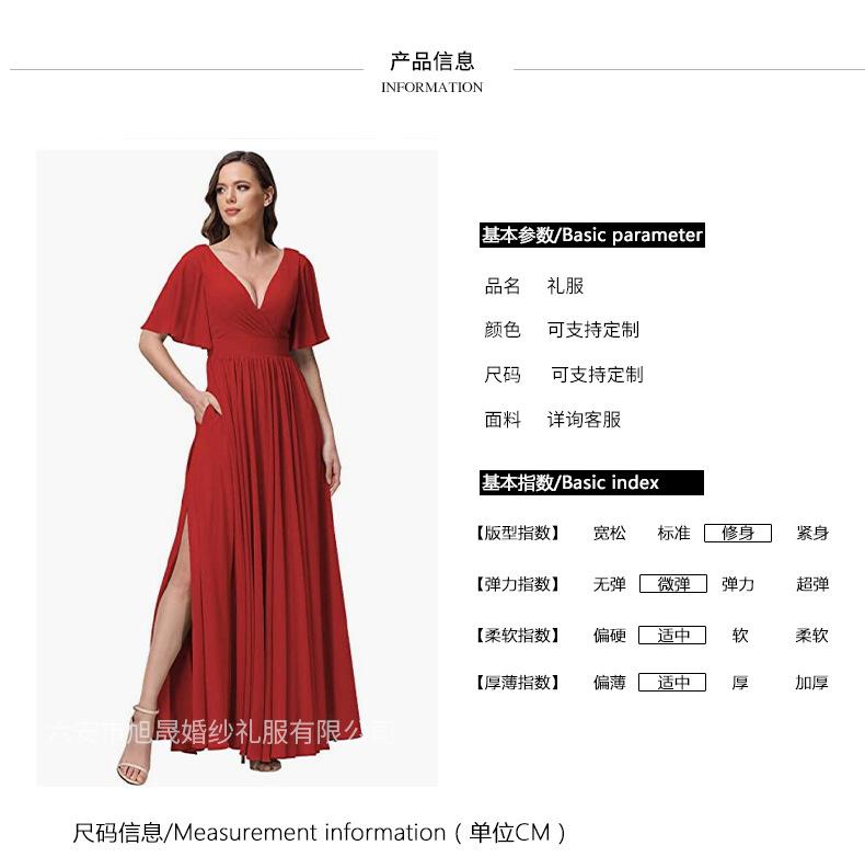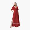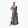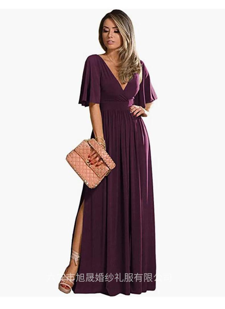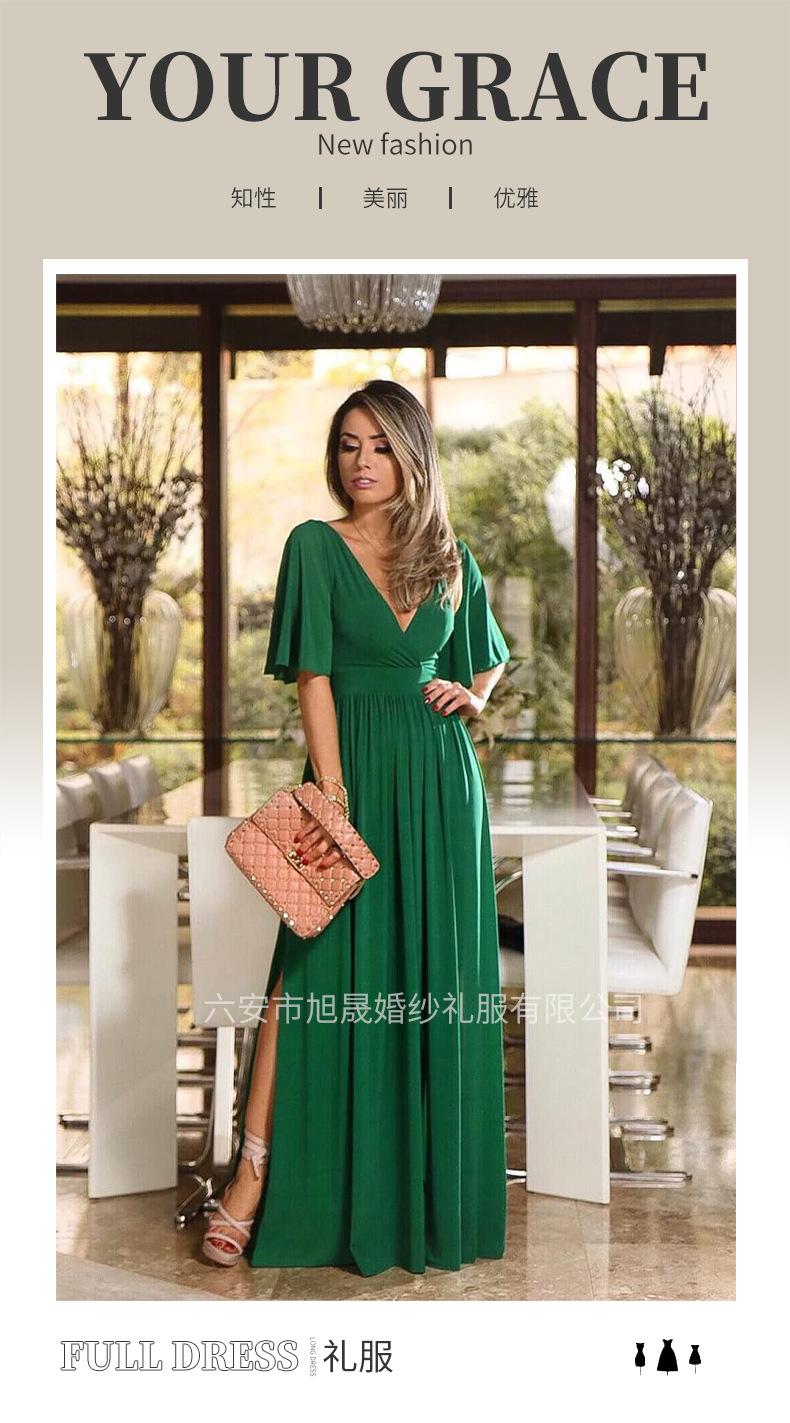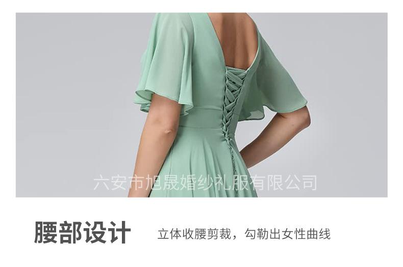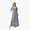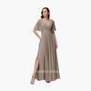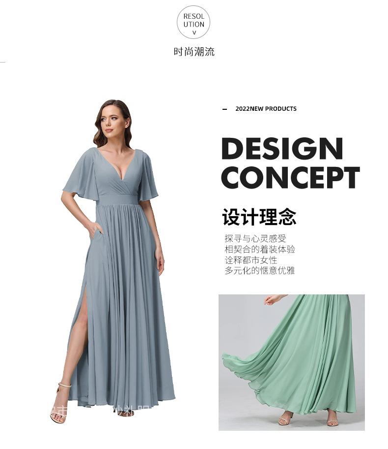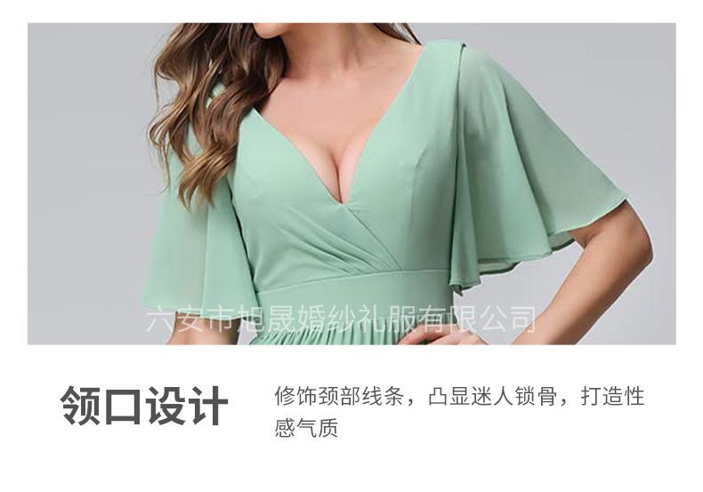Vestido de dama de honor largo con escote en V y mangas mariposa, cintura alta, adelgazante, con bolsillo y abertura en gasa.