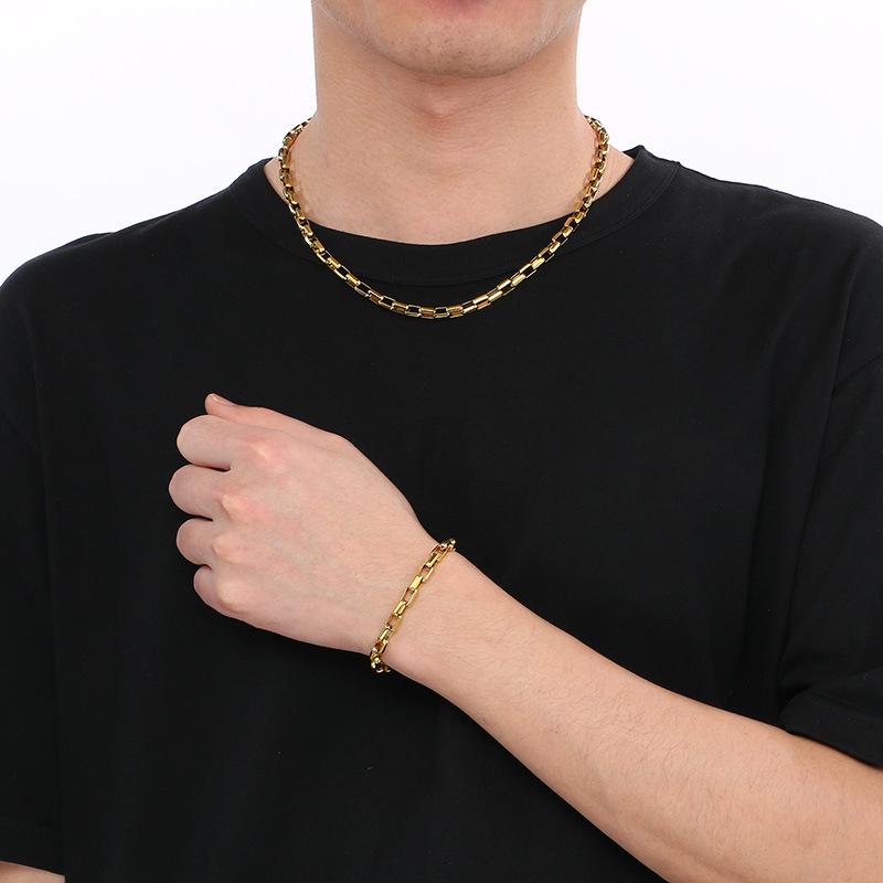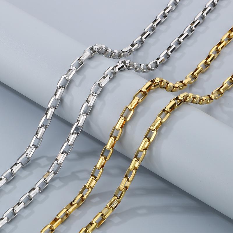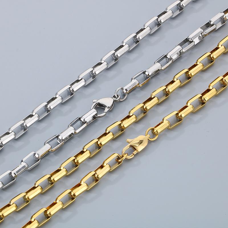 Collar de cadena cuadrada geométrica de varios tamaños, hecho a mano, de acero inoxidable chapado al vacío en oro de 18 quilates, para hombres y mujeres.