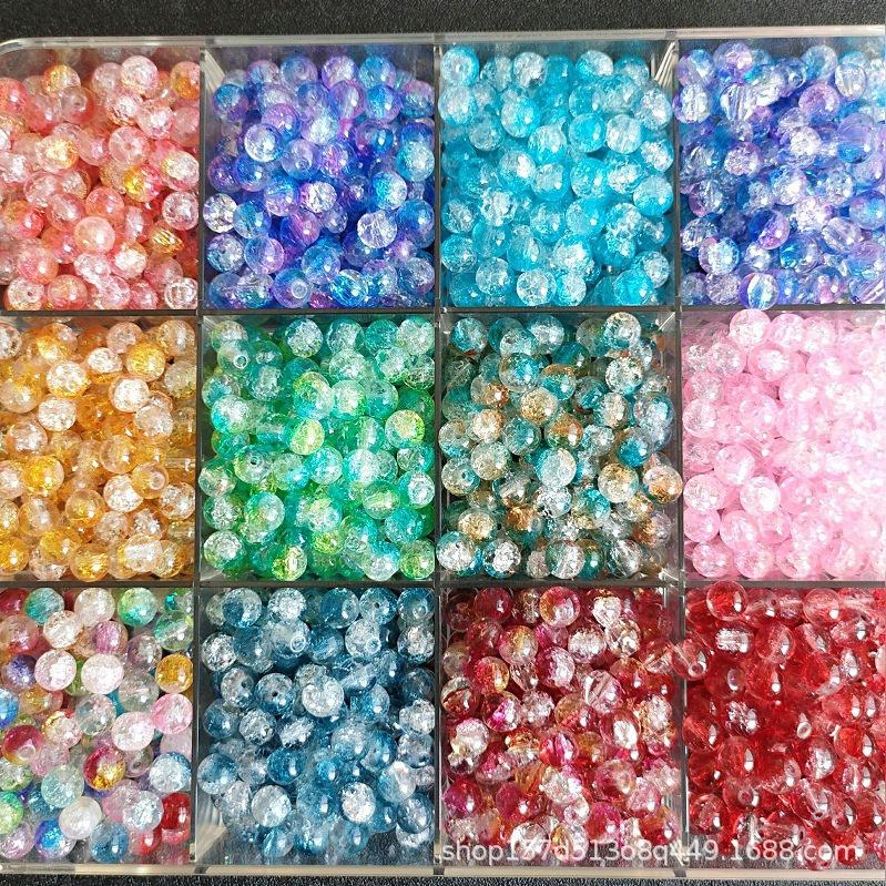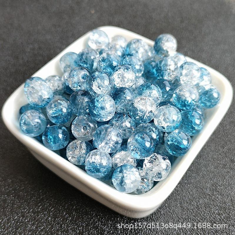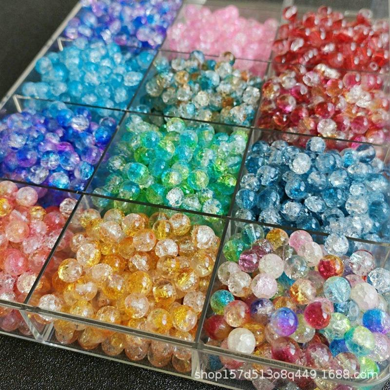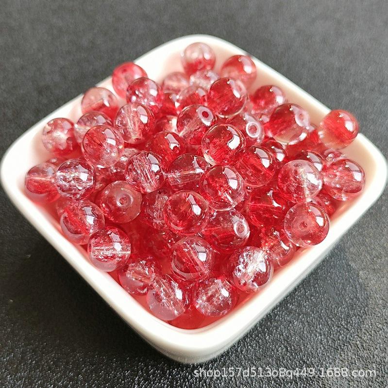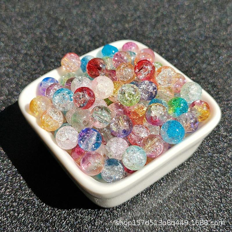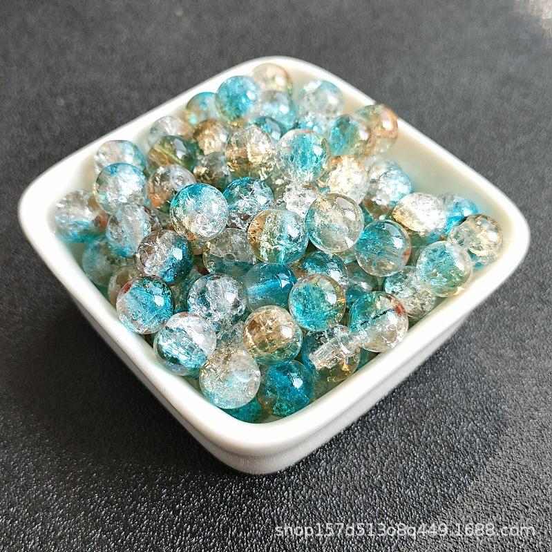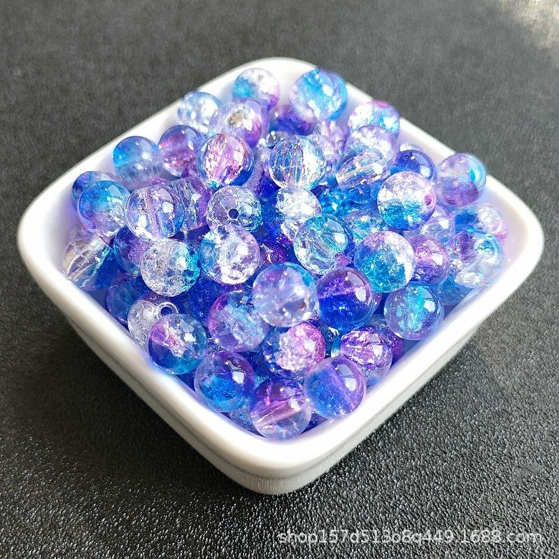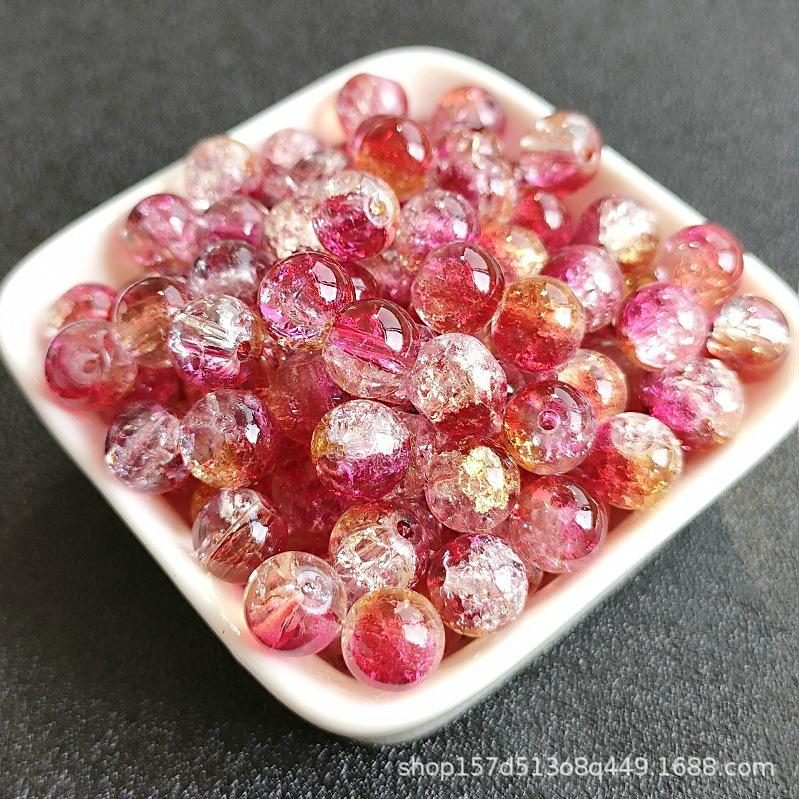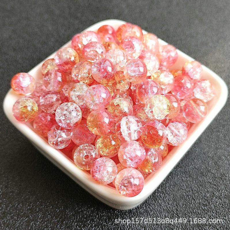 Cuentas de palomitas de maíz de dos colores degradados de 8 mm, cuentas sueltas de hielo agrietado, cuentas redondas de vidrio de colores, accesorios de cuentas hechos a mano para bricolaje