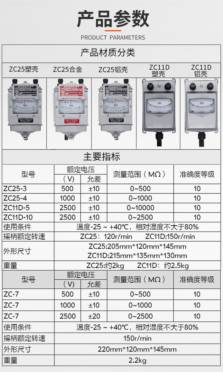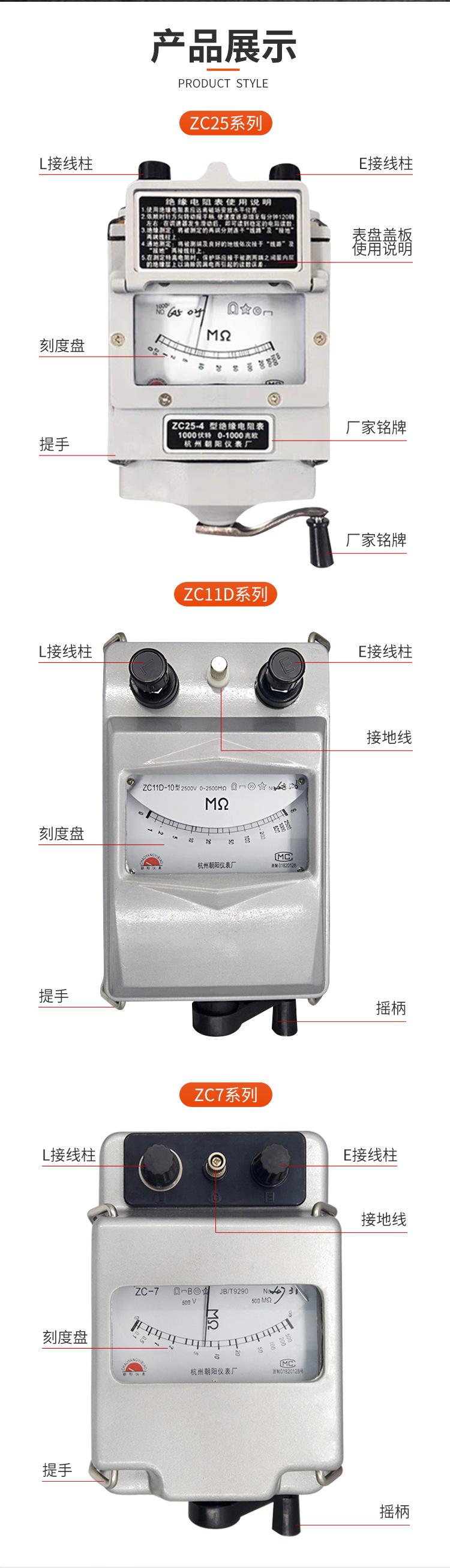 ZC25-3X plastic 500V New, ZC25-4X plastic 10 new 00V, ZC25-3 alloy 500V, ZC25-4 alloy 1000V, ZC25-3 full alumi...