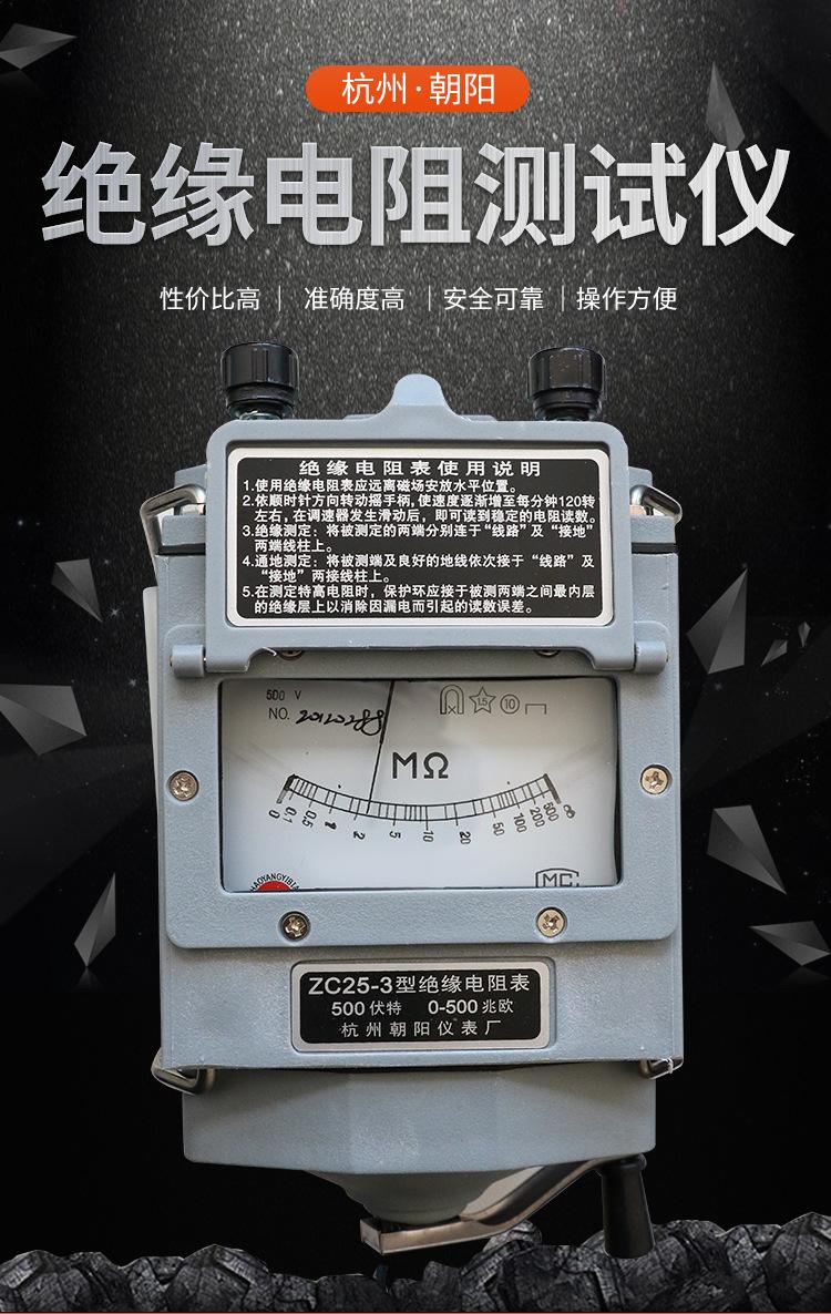Medidor de vibración Chaoyang para electricistas, megóhmetro de 500 V y medidor de resistencia de aislamiento de 1000 V, comprobador manual ZC25-3 de 2500 V