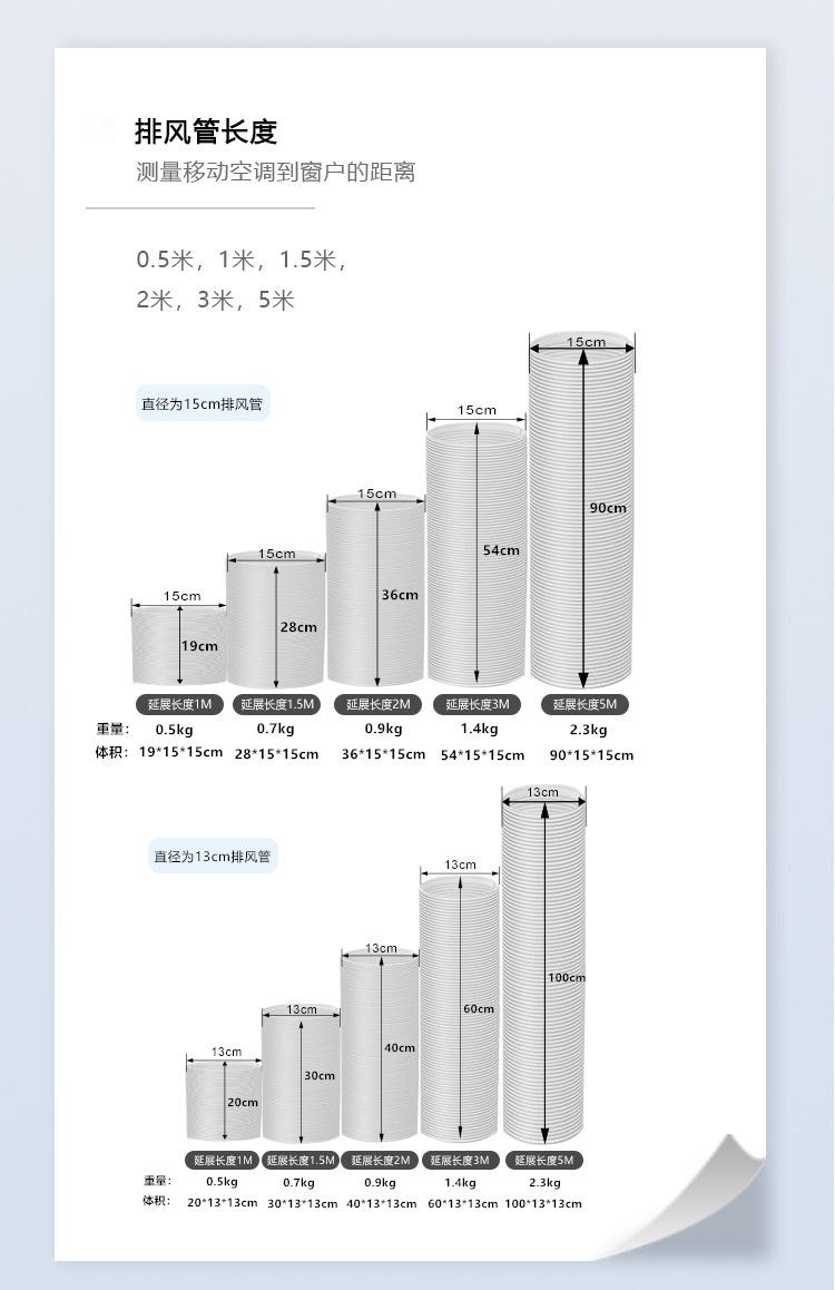 Conducto de escape especial para aire acondicionado móvil, con alambre. Los diámetros son 13 cm y 15 cm, las longitudes son 1.5 metros / 2 metros / 3 metros, las longitudes anteriores son las longitudes estiradas del conducto de escape.