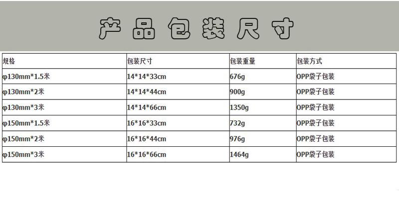 Diameter 130mm length 1.5 meters, Diameter 130mm Length 2 m, Diameter 130mm length 3 meters, Diameter 150mm le...