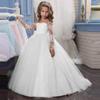 Vestido de novia de comercio exterior para niñas, vestido de tutú con actuación de piano, vestido de niña de las flores, vestido de princesa de manga larga, vestido de cola para niñas