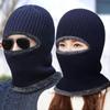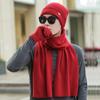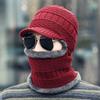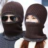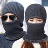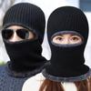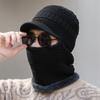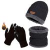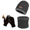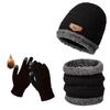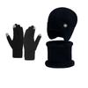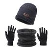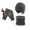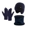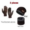 Conjunto de tres piezas de gorro de punto para hombre, suéter, bufanda, gorro cálido engrosado, protección facial, gorro de lana, guantes táctiles con forro polar para mujer