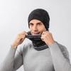 Traje de gorro y bufanda de lana gruesa con forro polar de invierno de dos piezas a cuadros moda para exteriores para hombre gorro de punto jersey