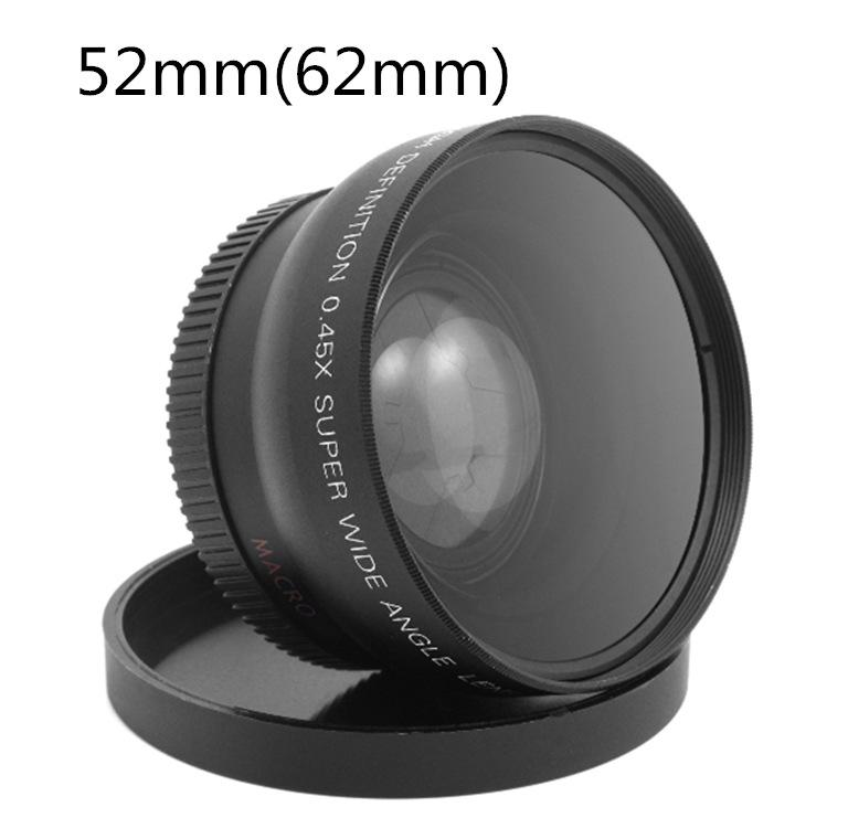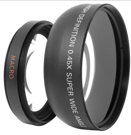 Este es un lente macro gran angular de 52 mm 0.45x. El ángulo de visión de la cámara se multiplica por el 0.45x digital, más que duplica el ángulo de visión de la cámara. Ideal para paisajes o situaciones de grabación.